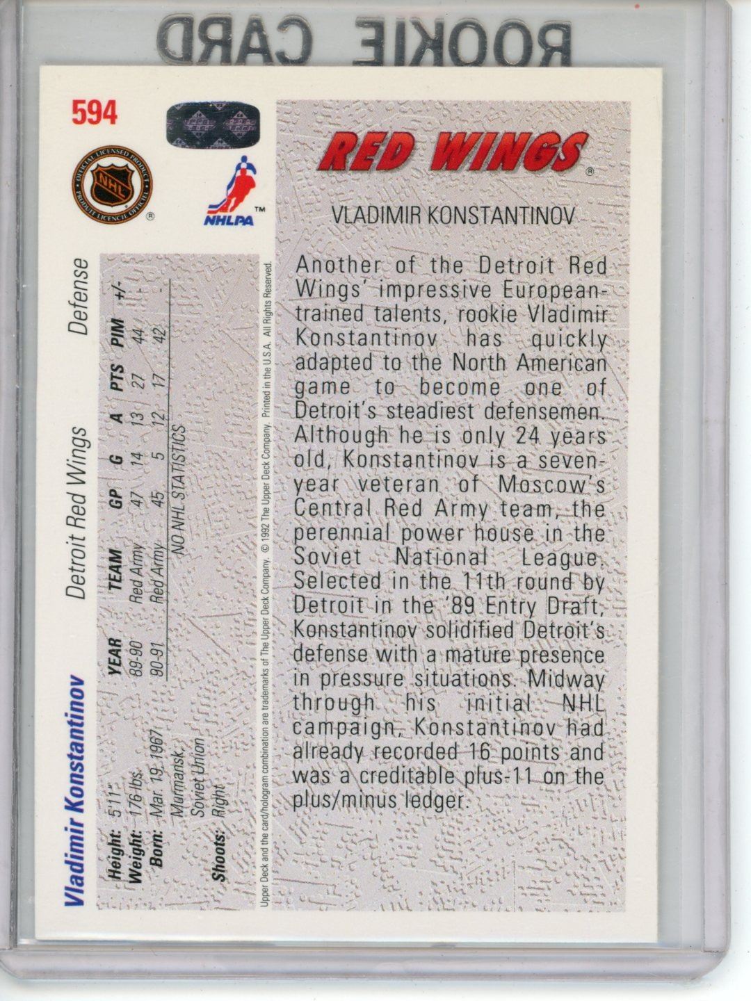 Gradable rookie card - Vladimir Konstantinov #599