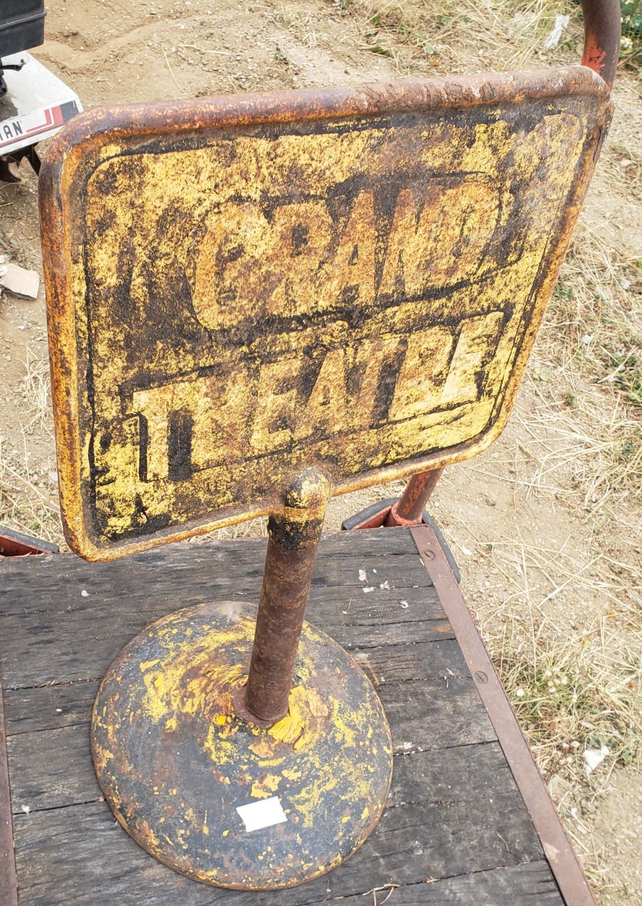 Grand Theater sign from Hotel Saskatchewan in Regina, in its own very heavy base
