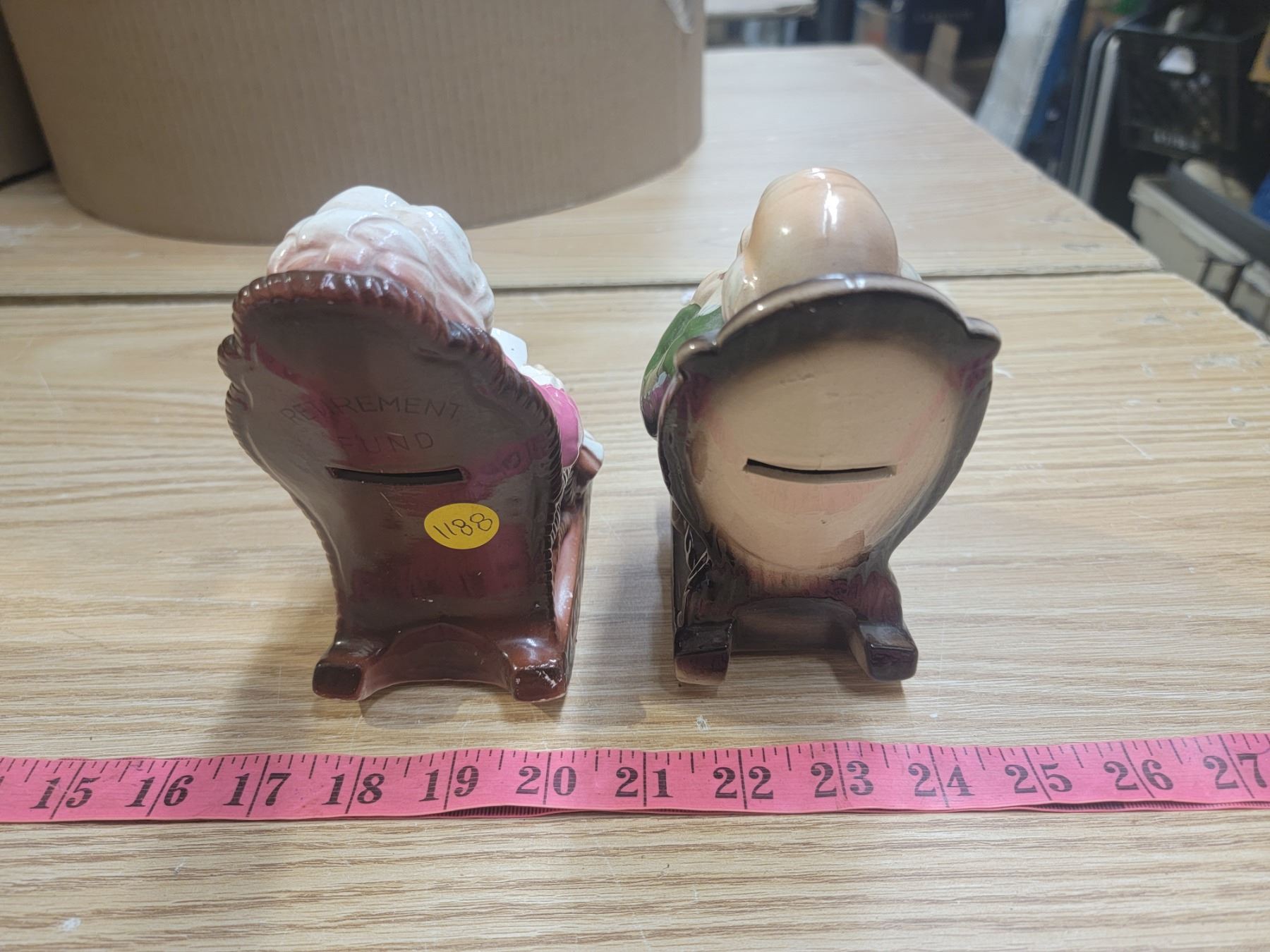 Grandpa & Grandma "retirement fund" coin banks missing cork plugs