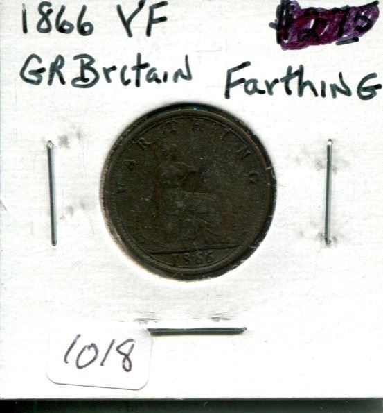 Great Britain. 1866 Queen Victoria young head farthing. VF.