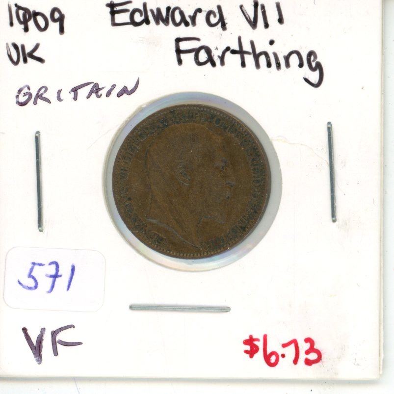 Great Britain. 1909 Farthing. King Edward VII. VF.