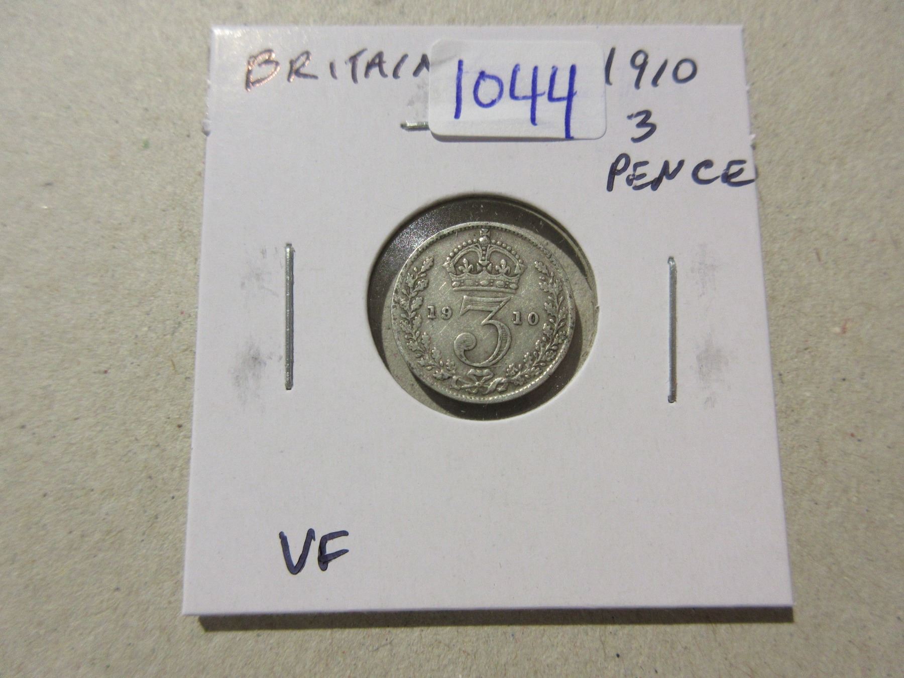 Great Britain. 1910 Silver 3 Pence. Last year of Edward VII. Sterling Silver. VF.