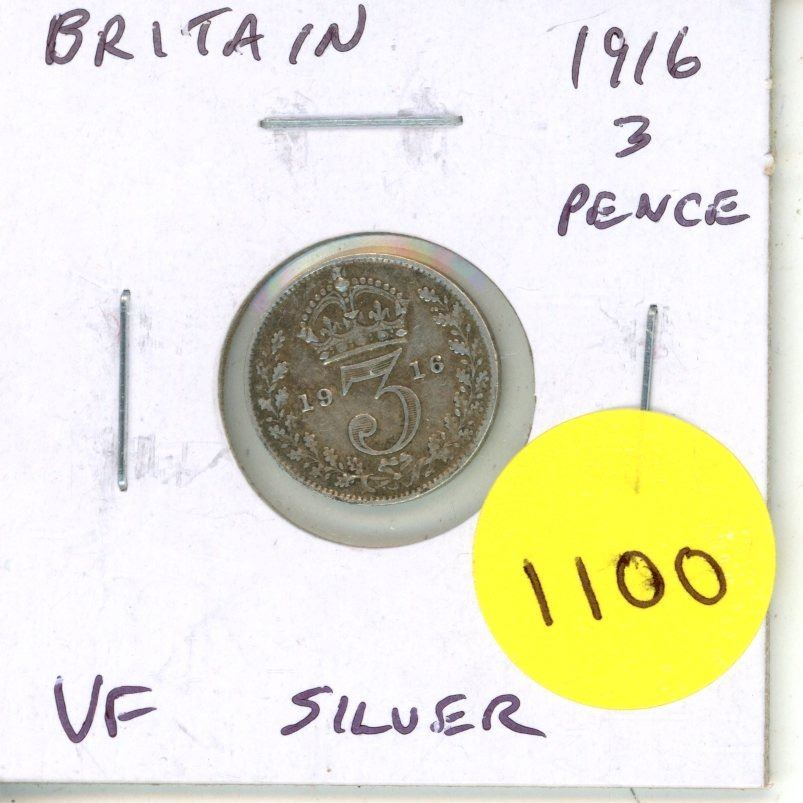 Great Britain. 1916 Sterling Silver 3 Pence. VF.