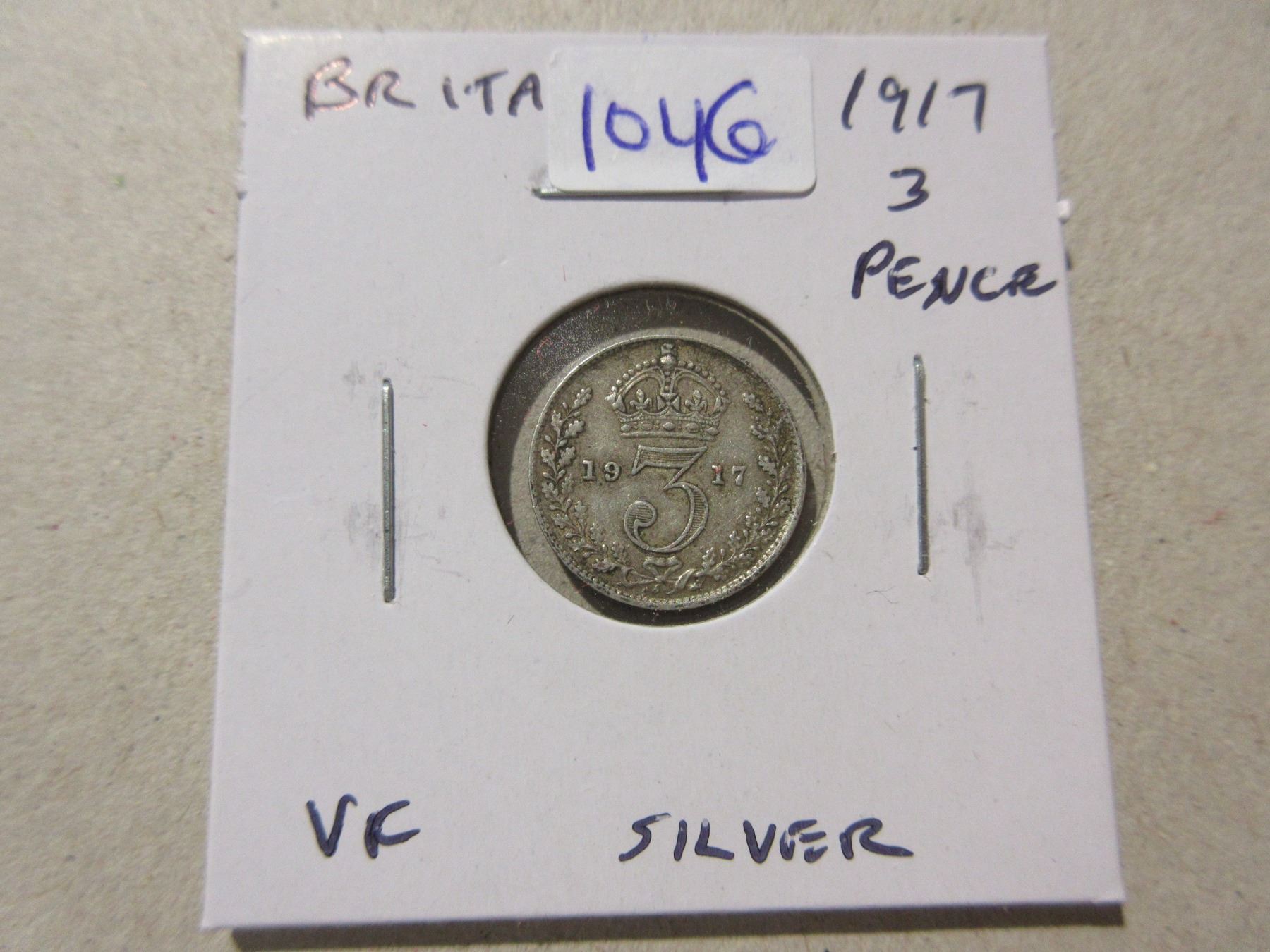 Great Britain. 1917 Silver 3 Pence. Minted during World War I. Sterling Silver. VF.