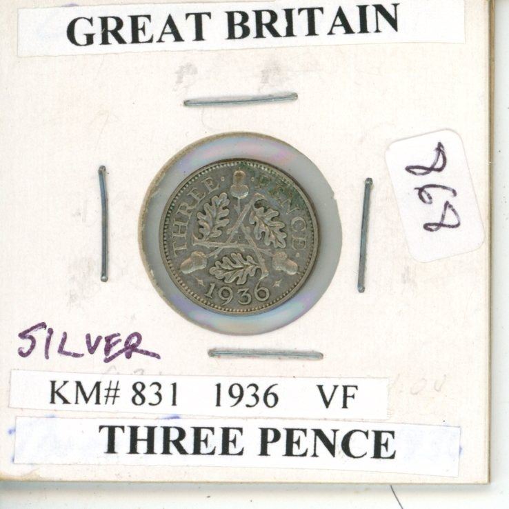 Great Britain. 1936 George V Silver 3 Pence. The year George V died and was replaced by his 2 sons (Edward VIII and George VI.). VF.
