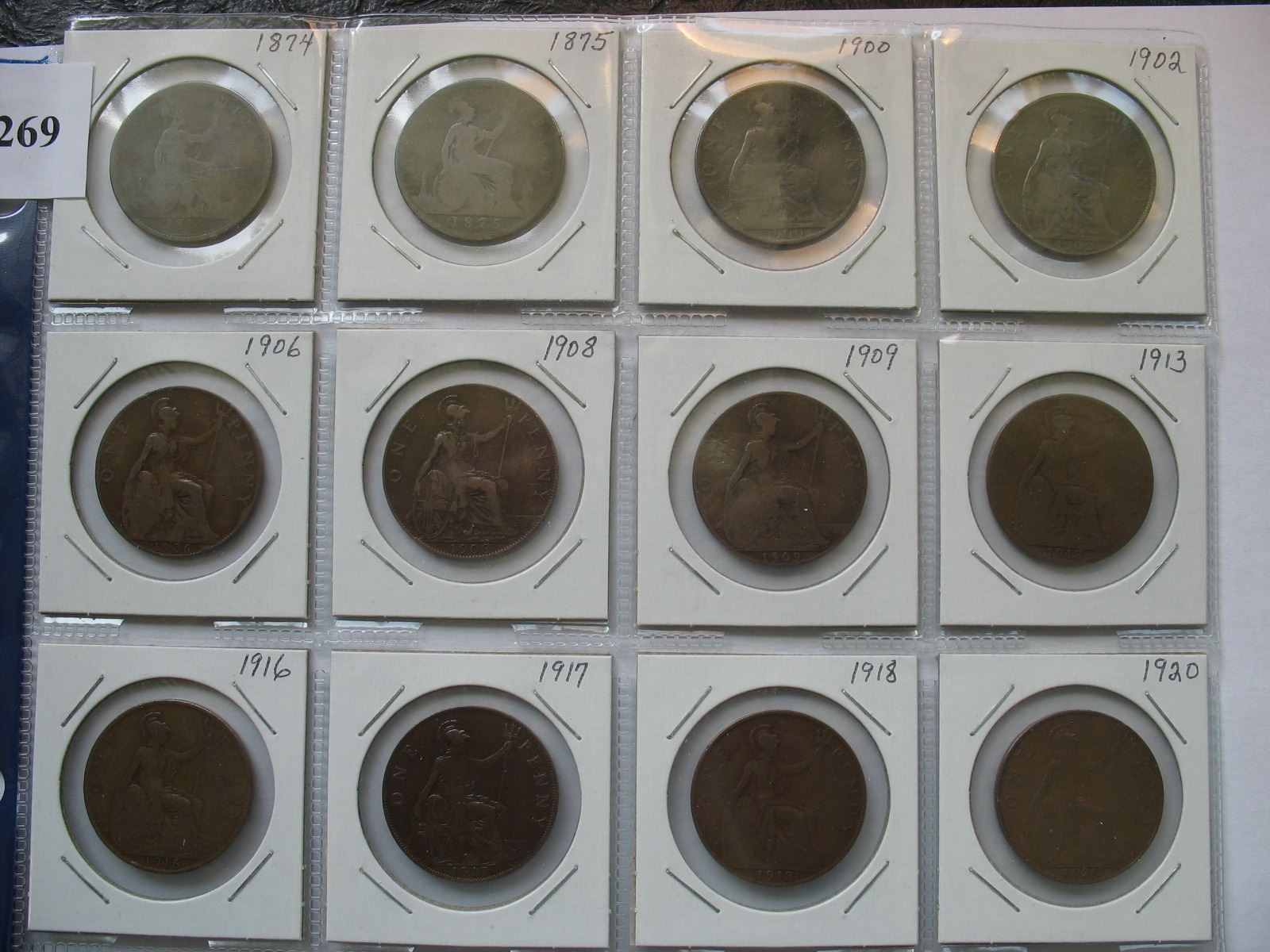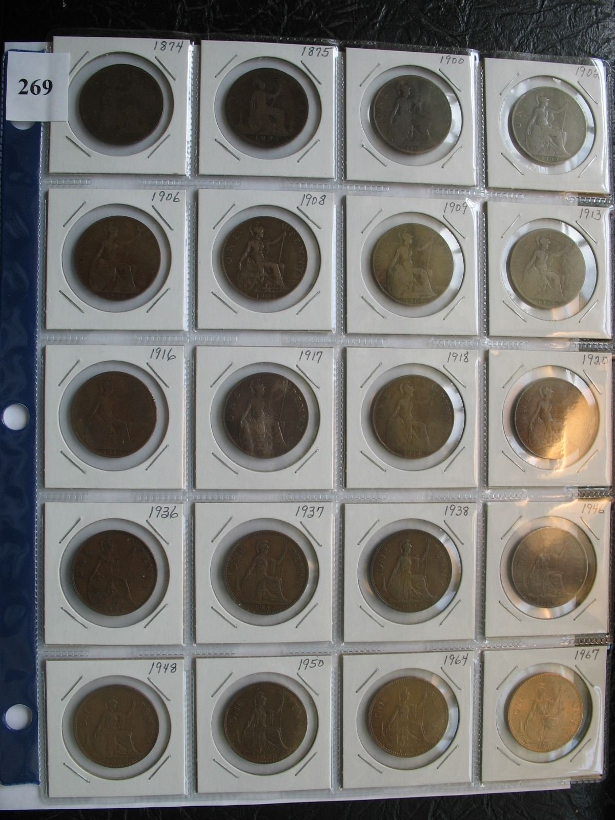Great Britain Coins - Pennies (1874-1967) - 20 Different Coins