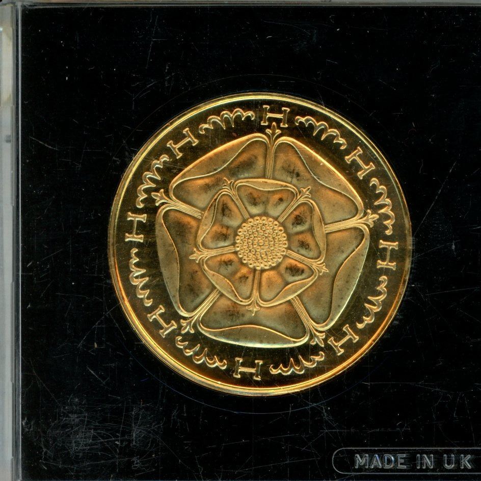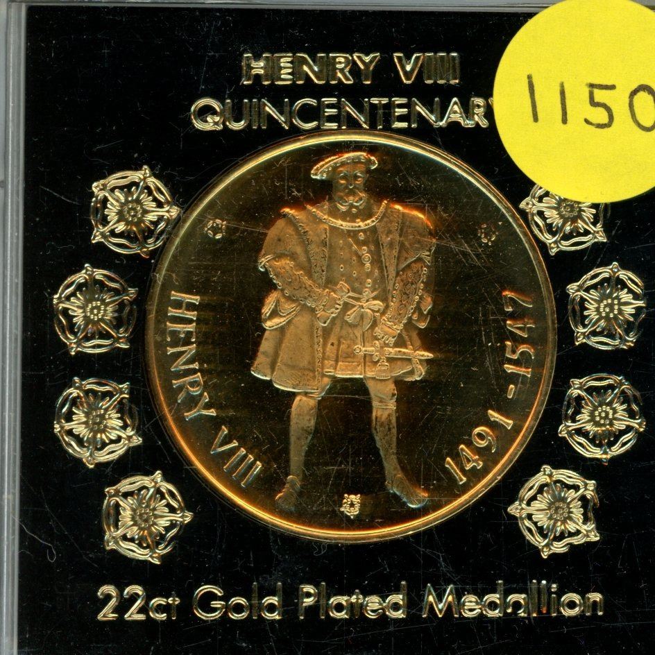 Great Britain. Henry VIII Quincentenary Gold-Plated Medallion. Housed in hard plastic holder. BU.