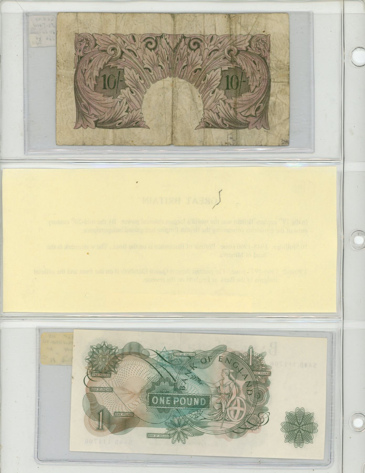 Great Britain. Lot of 2 British notes. 1948-1960 10 Shillings P-366 VG and 1960-1977 1 Pound P-372c AU.