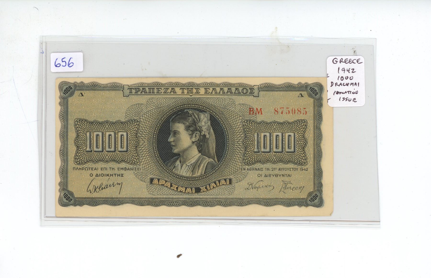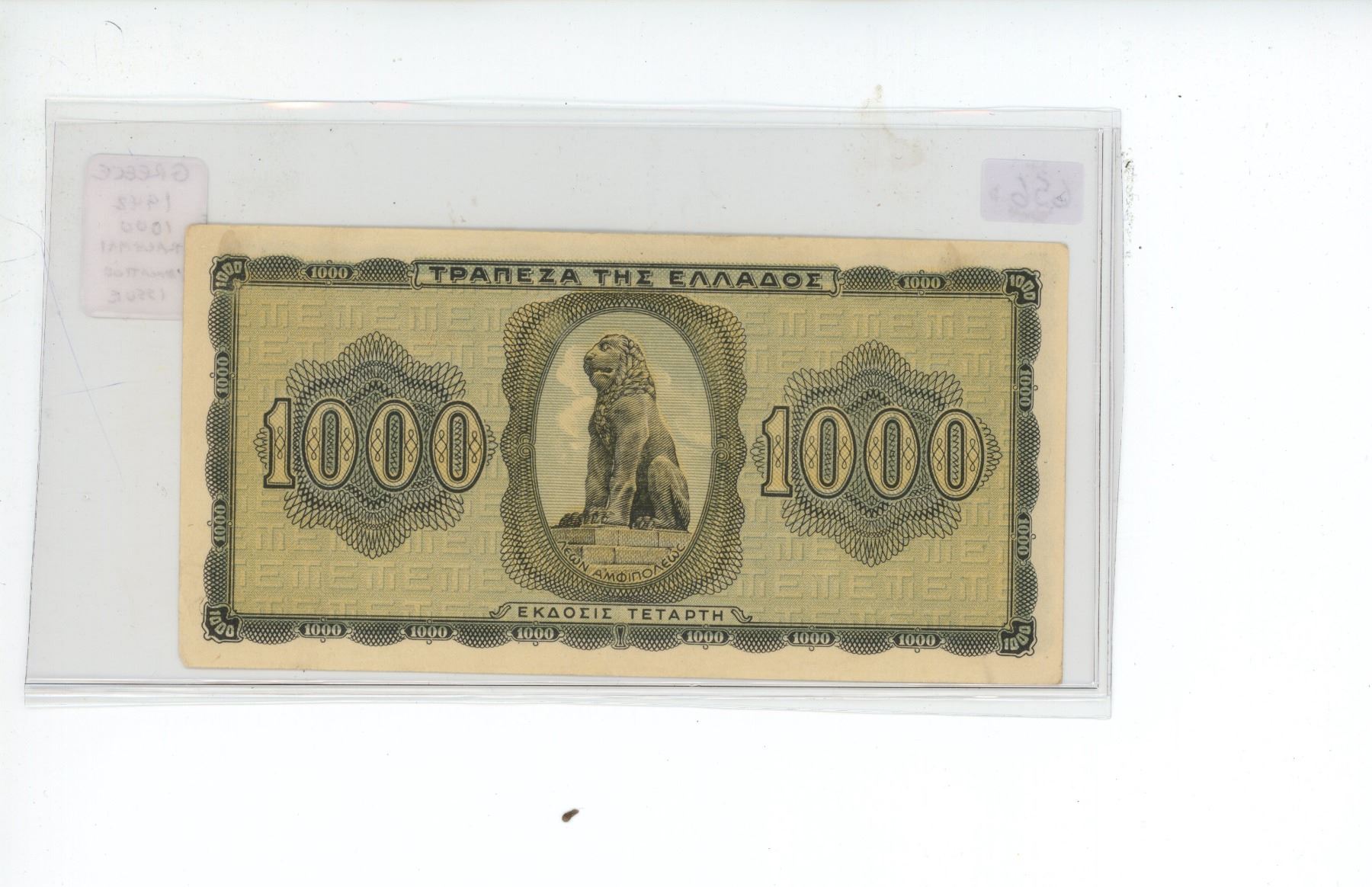 Greece. 1942 1000 Drachmai. Issued under German occupation. The beginning of hyper-inflation. VF+.