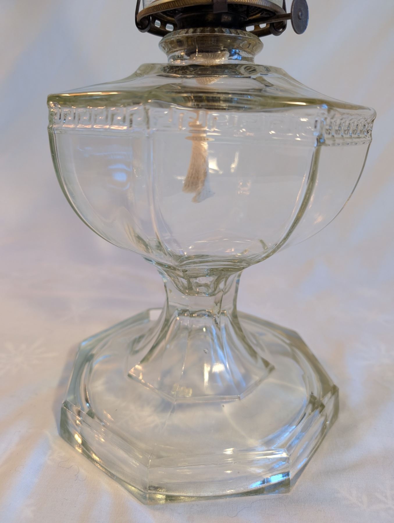 Greek Key Sewing Coal Oil Lamp Circa 1910-1920.