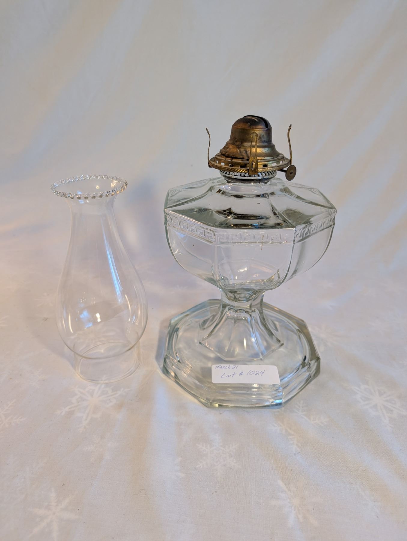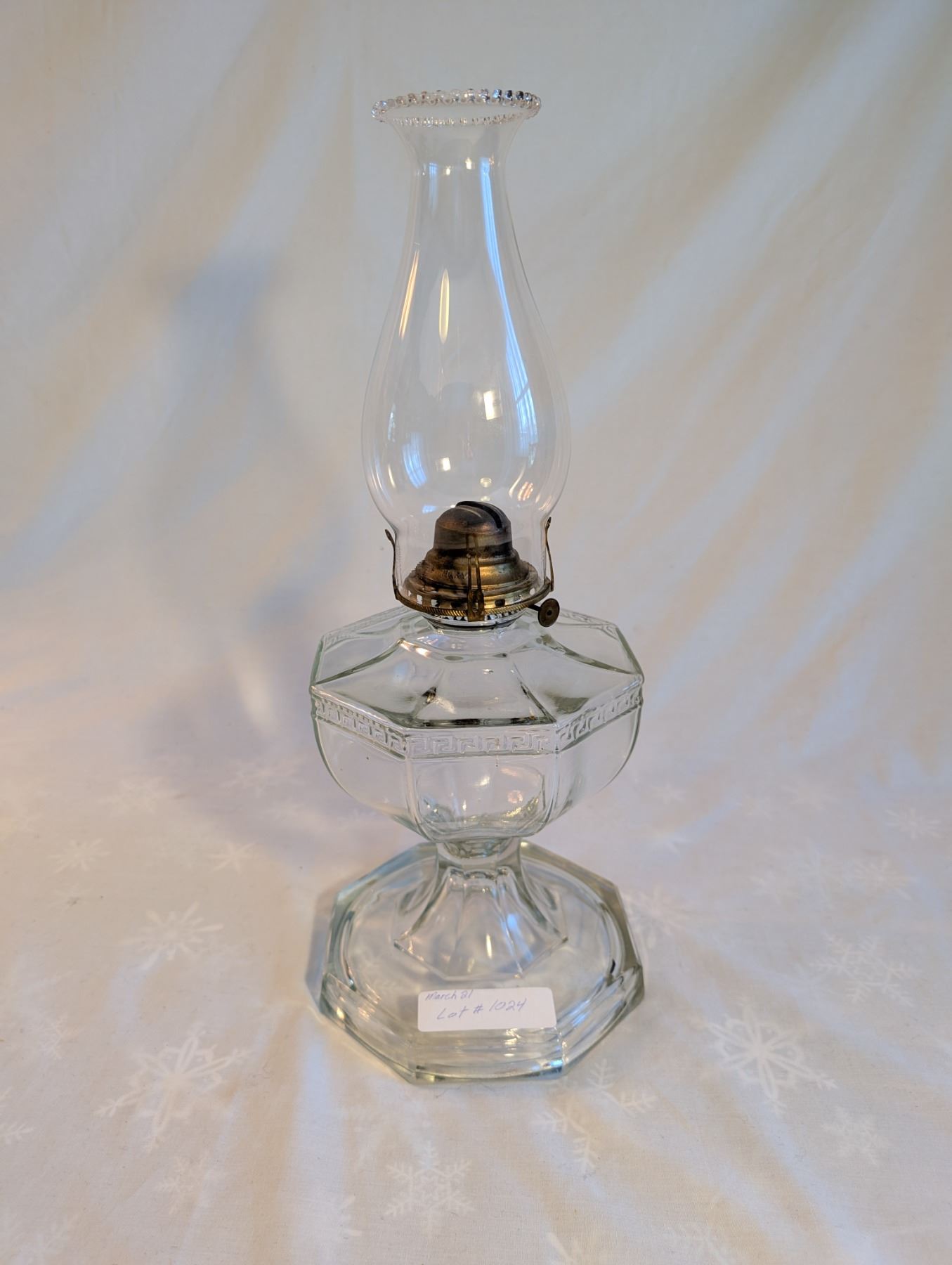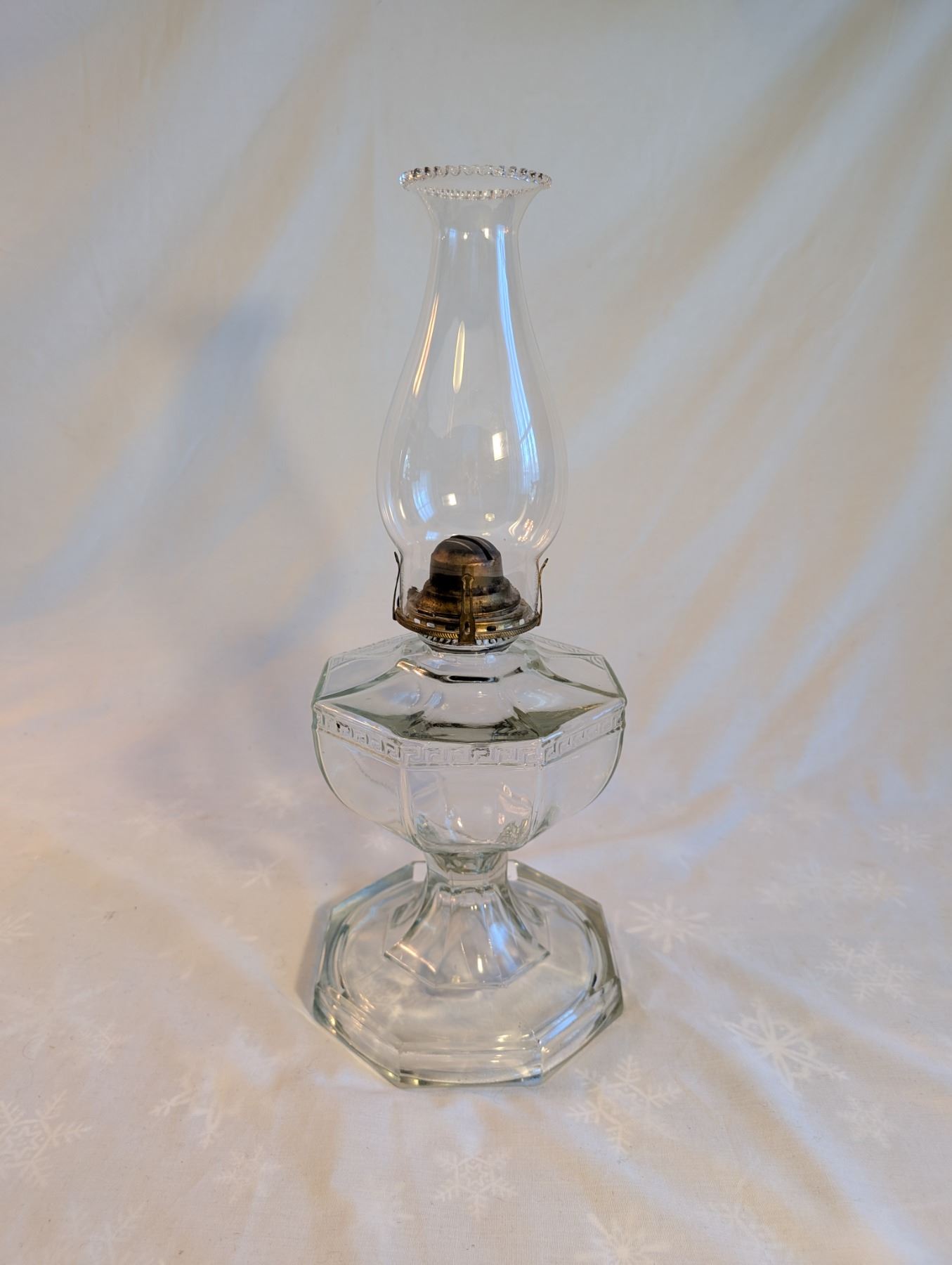 Greek Key Sewing Coal Oil Lamp Circa 1910-1920.