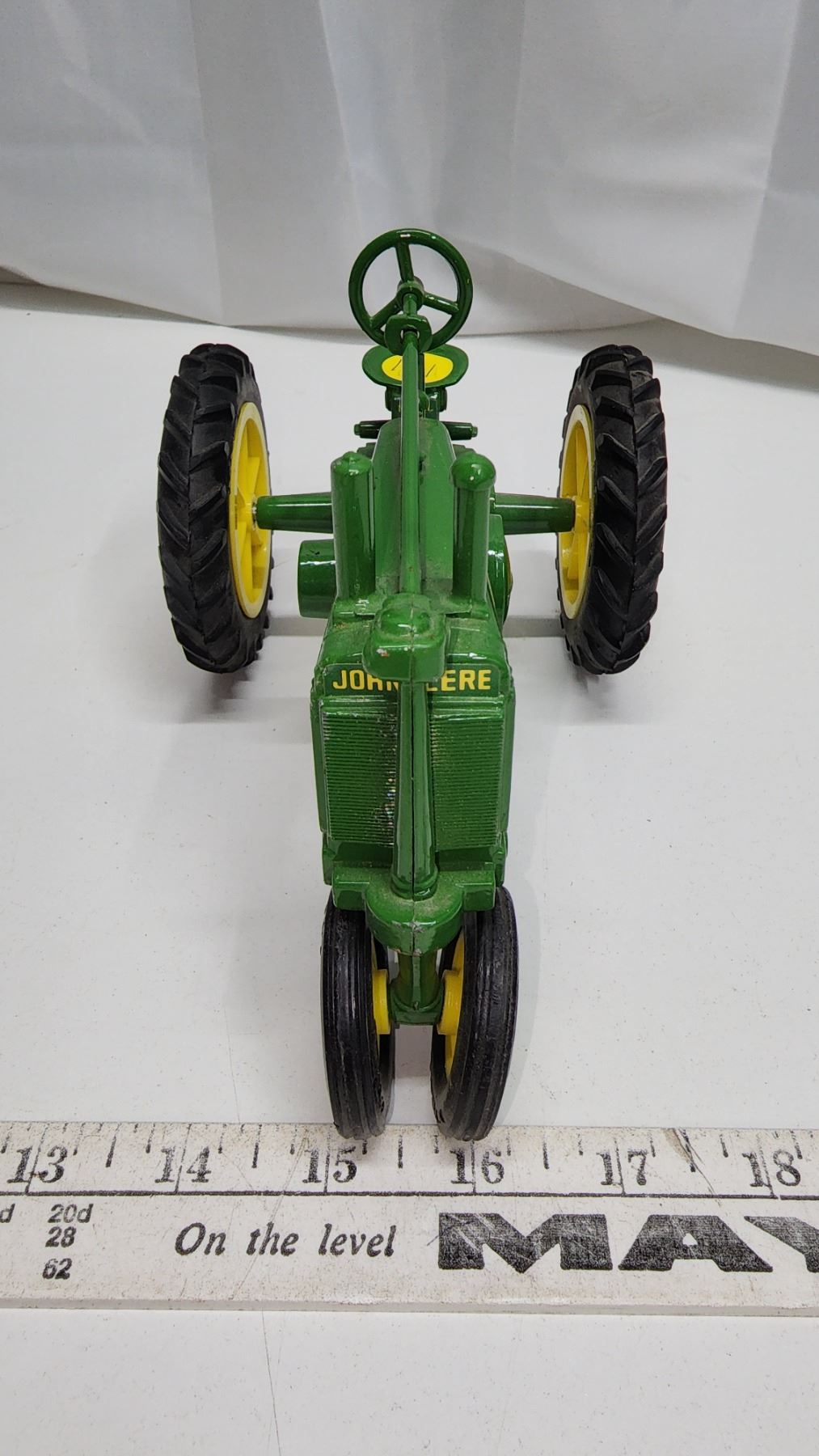 Green "John Deere" metal tractor collector toy - like new