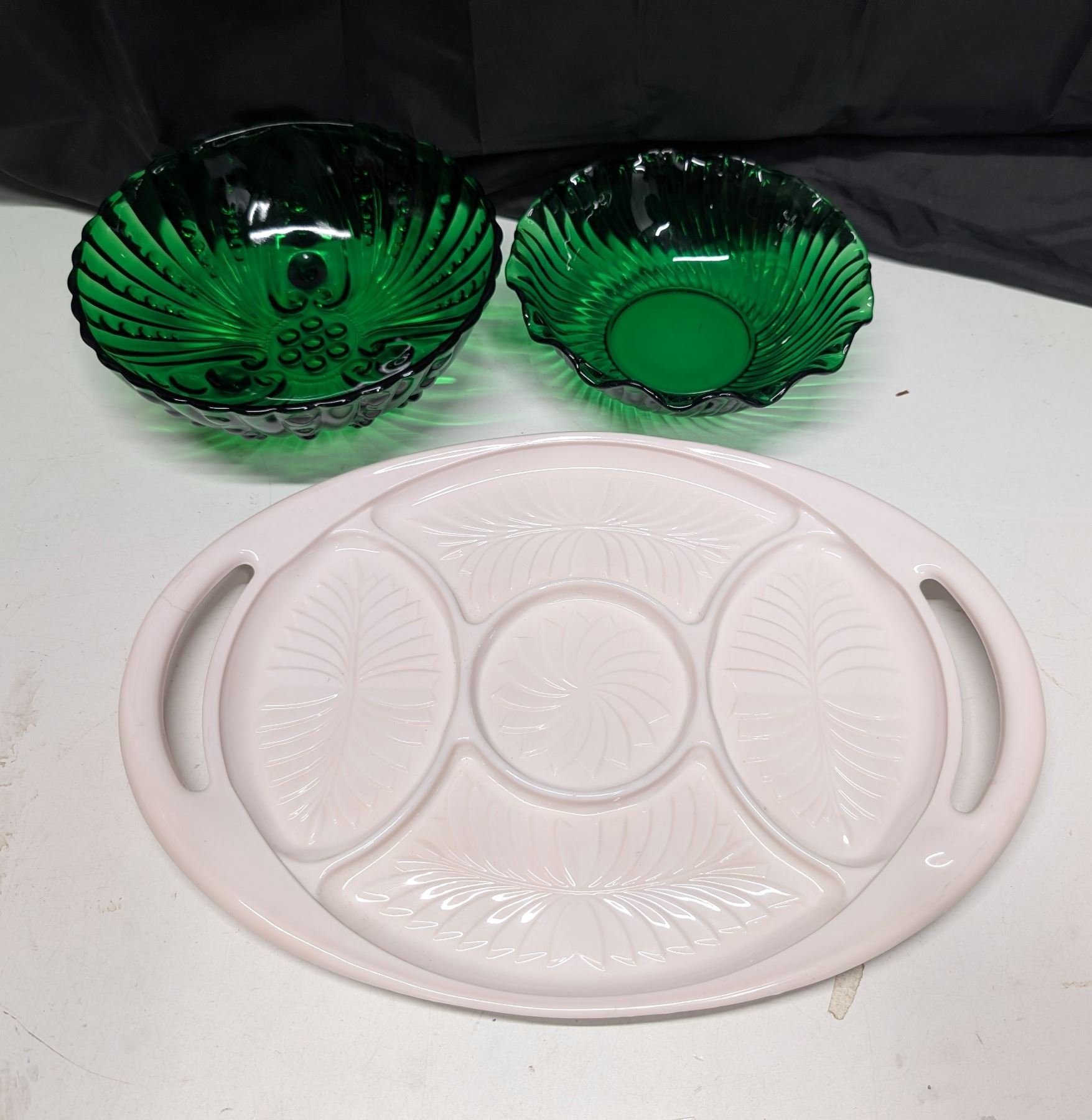 Green Pattern Bowls w/ ink Food Divider