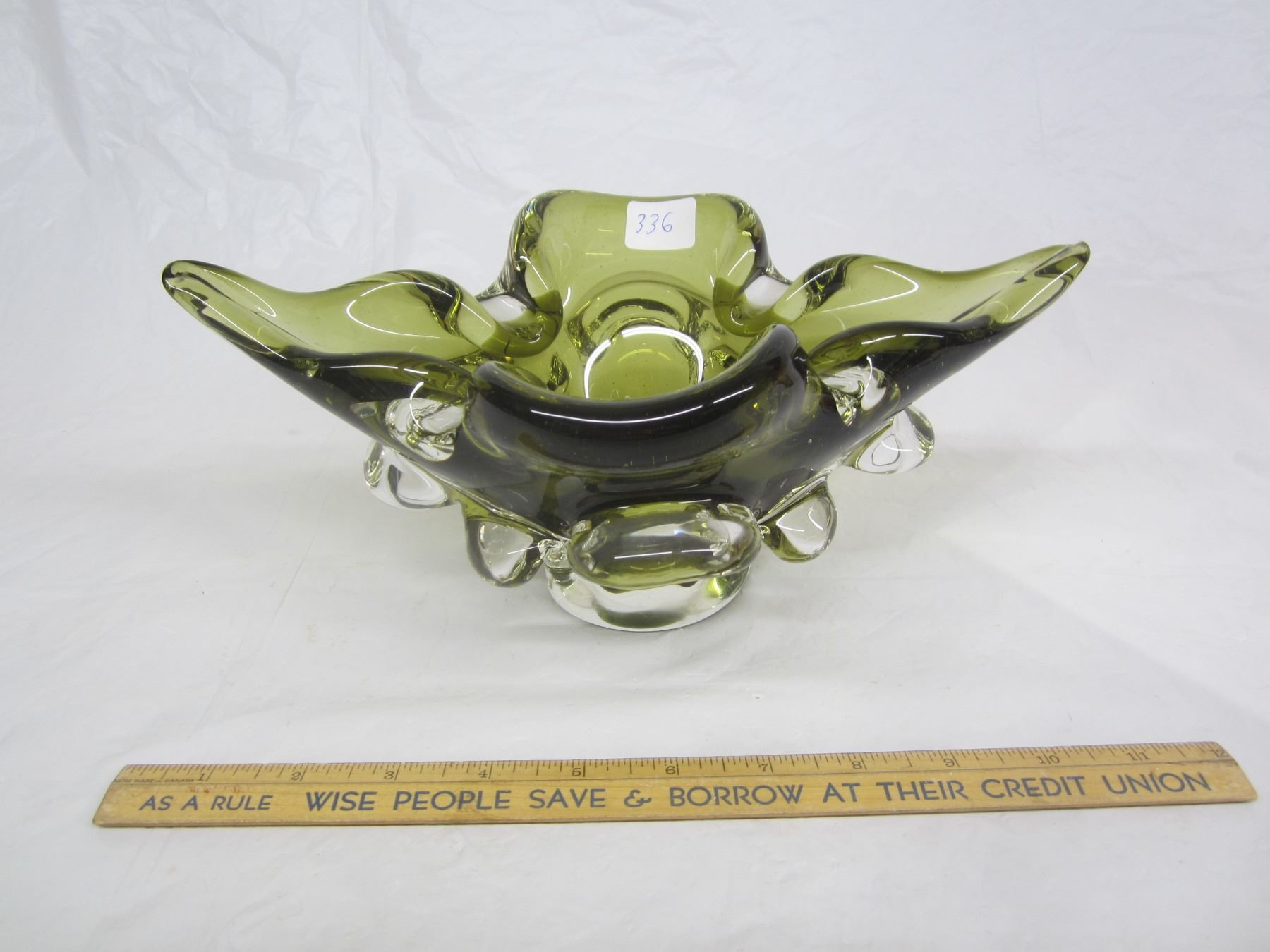 Green Unmarked Chalet Art Glass Bowl Good Condition No Chips