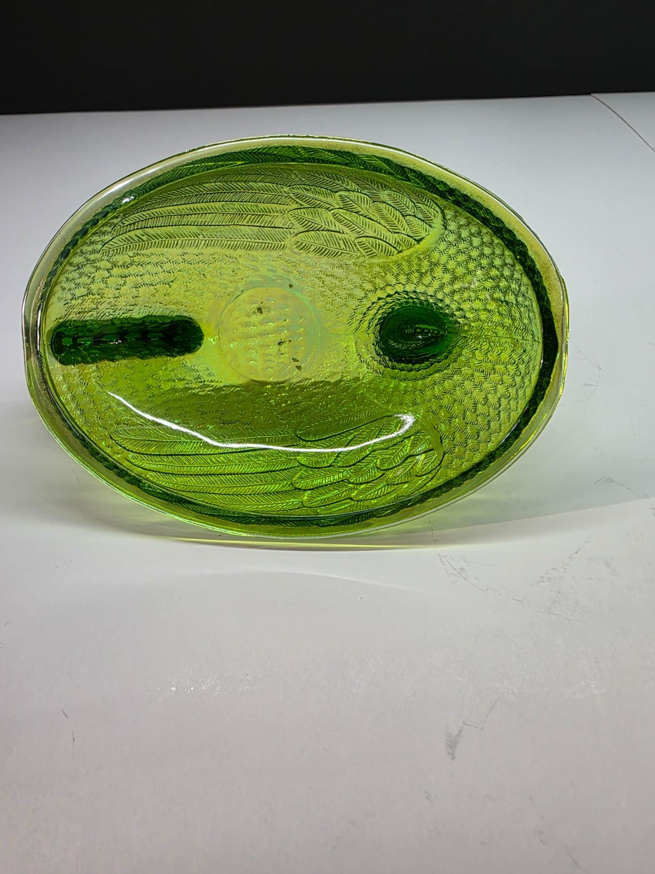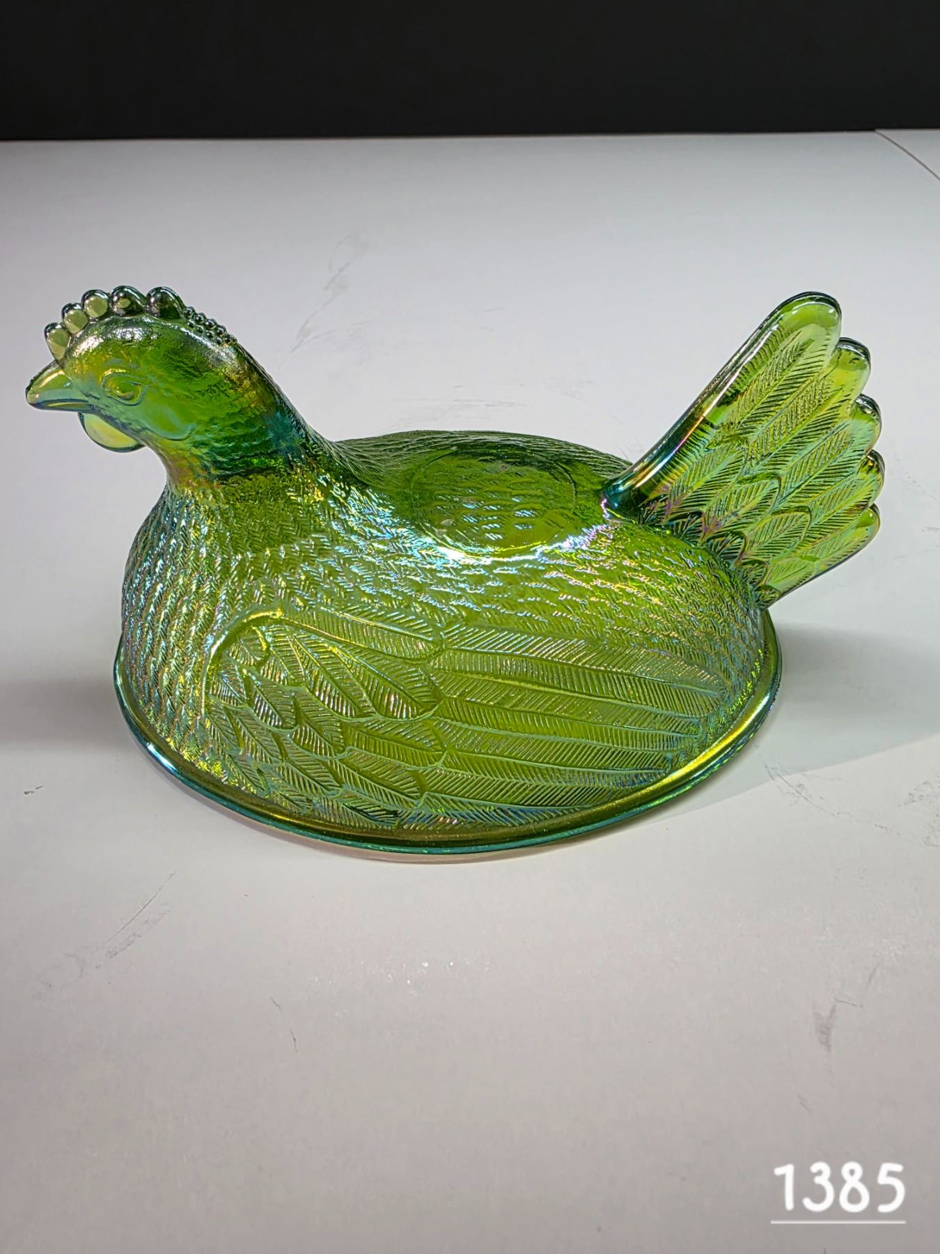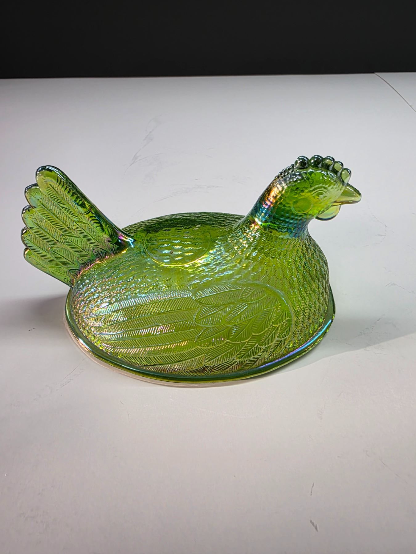 Green carnival glass hen top- 6" by 4"