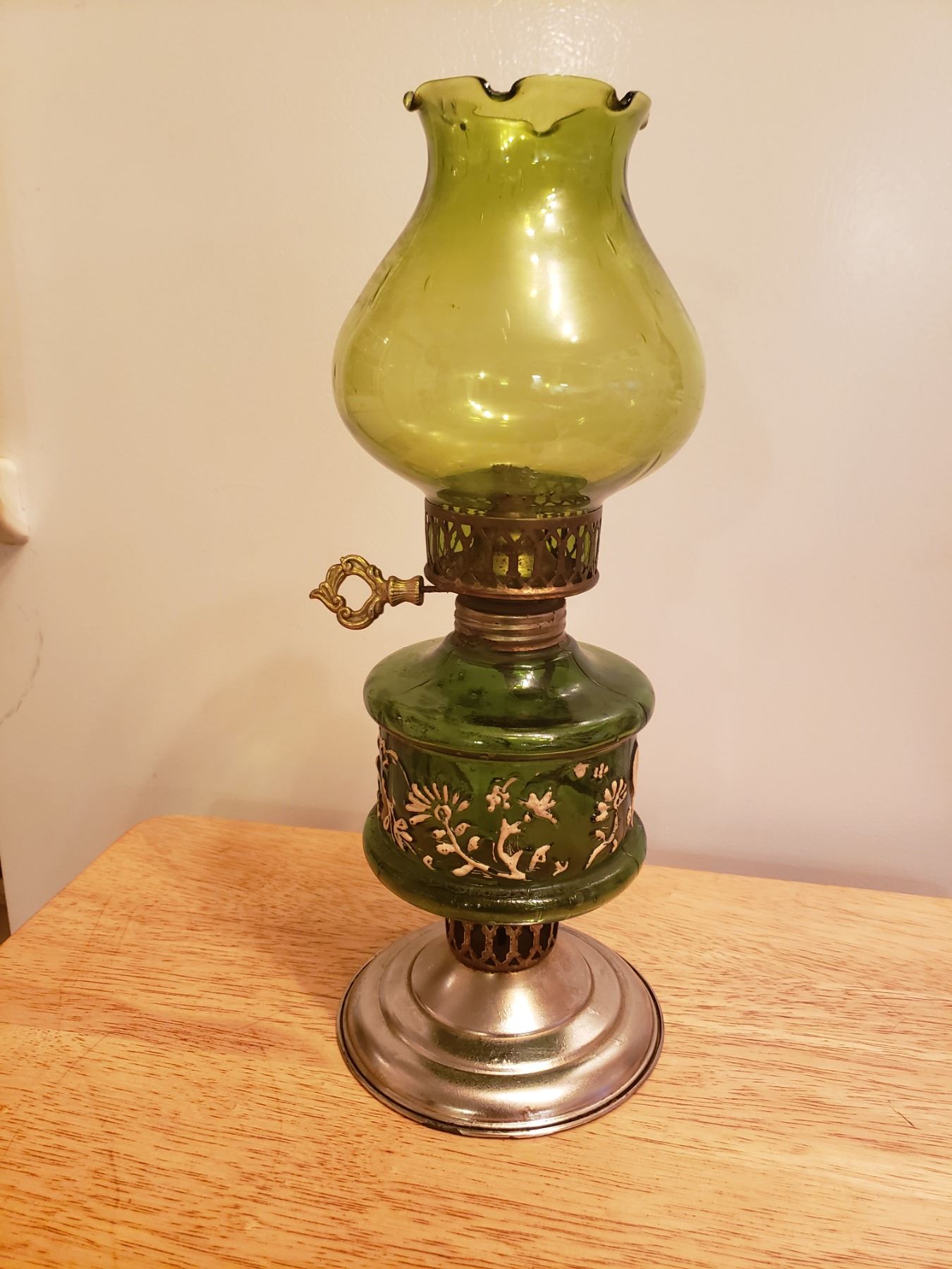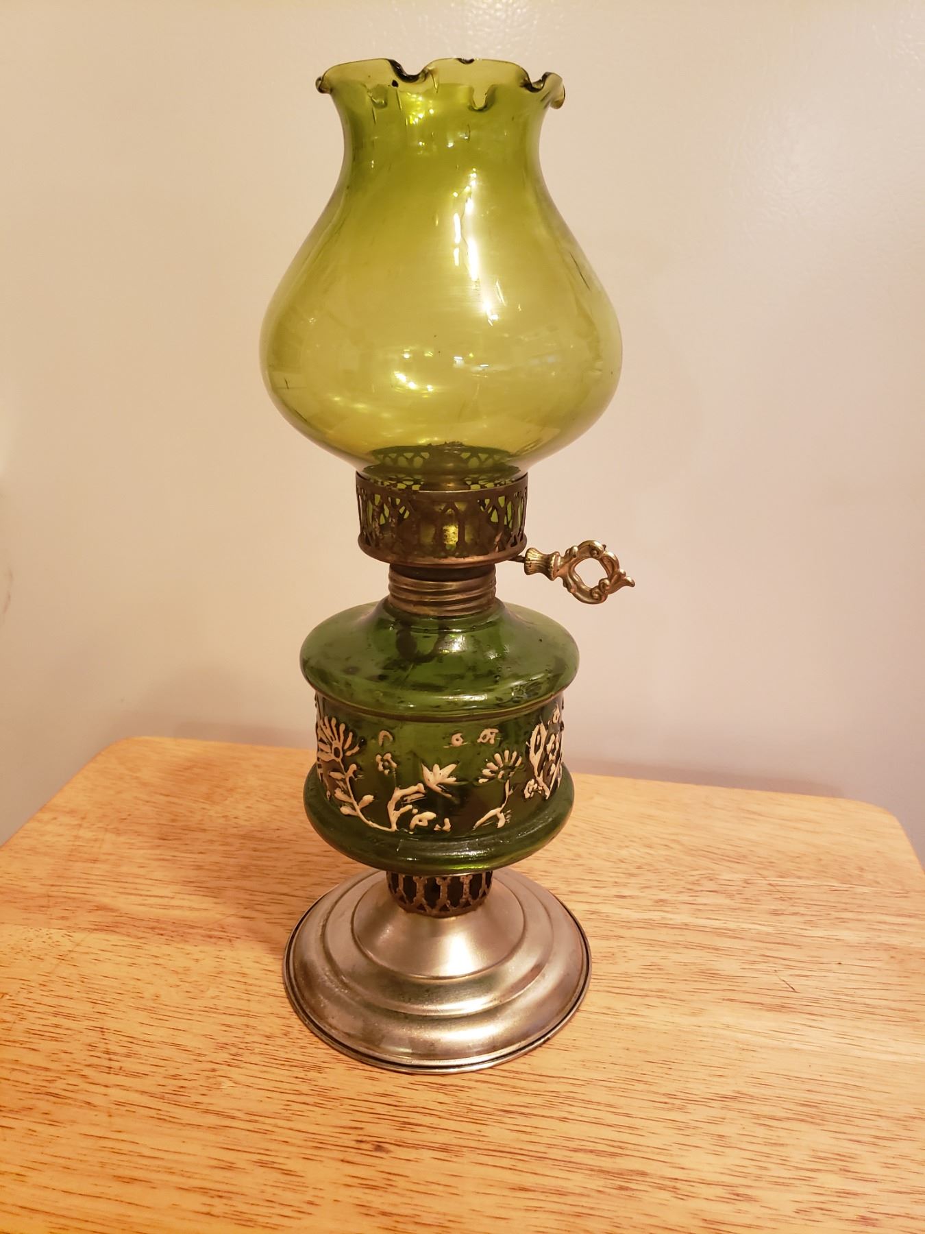 Green coal oil lantern with shade, no damage
