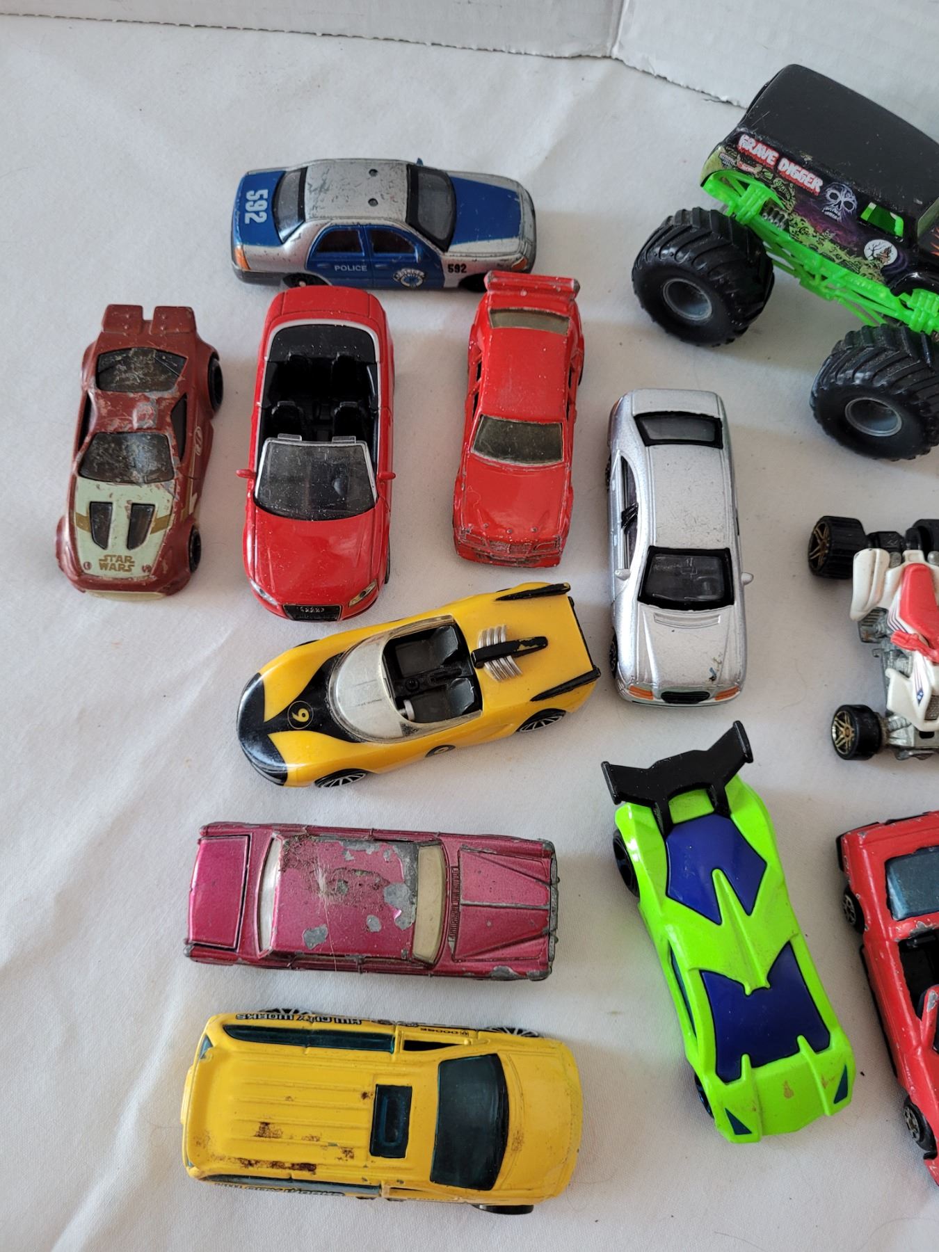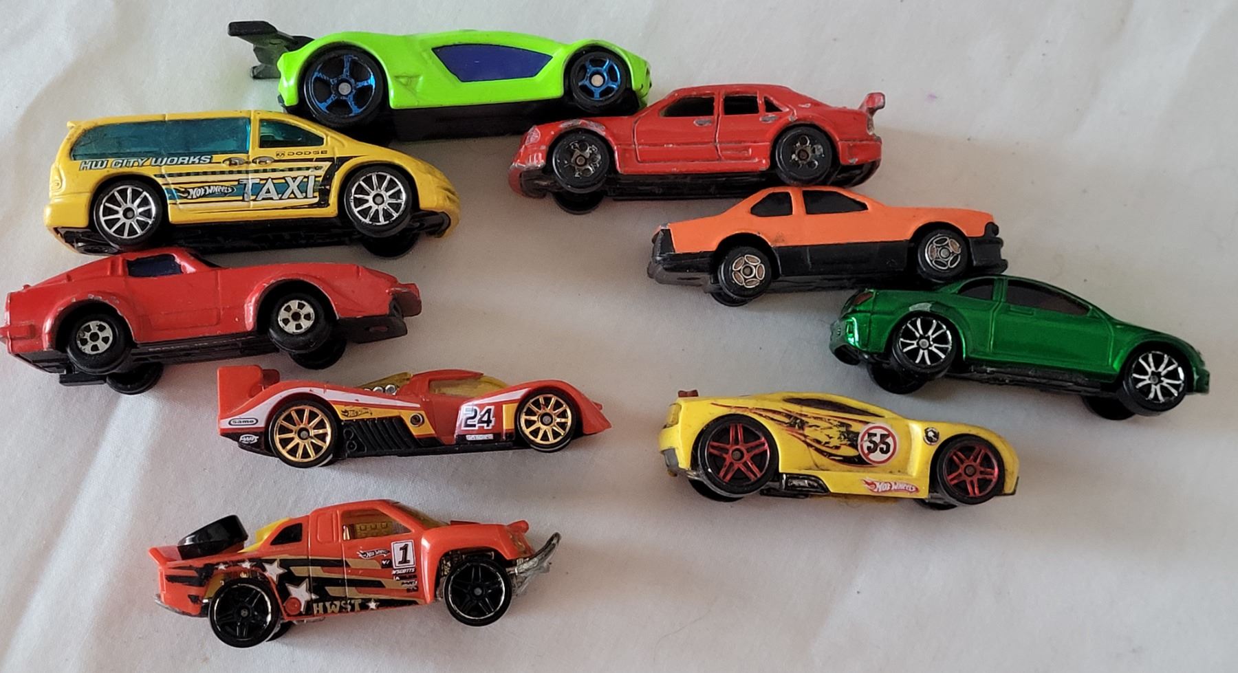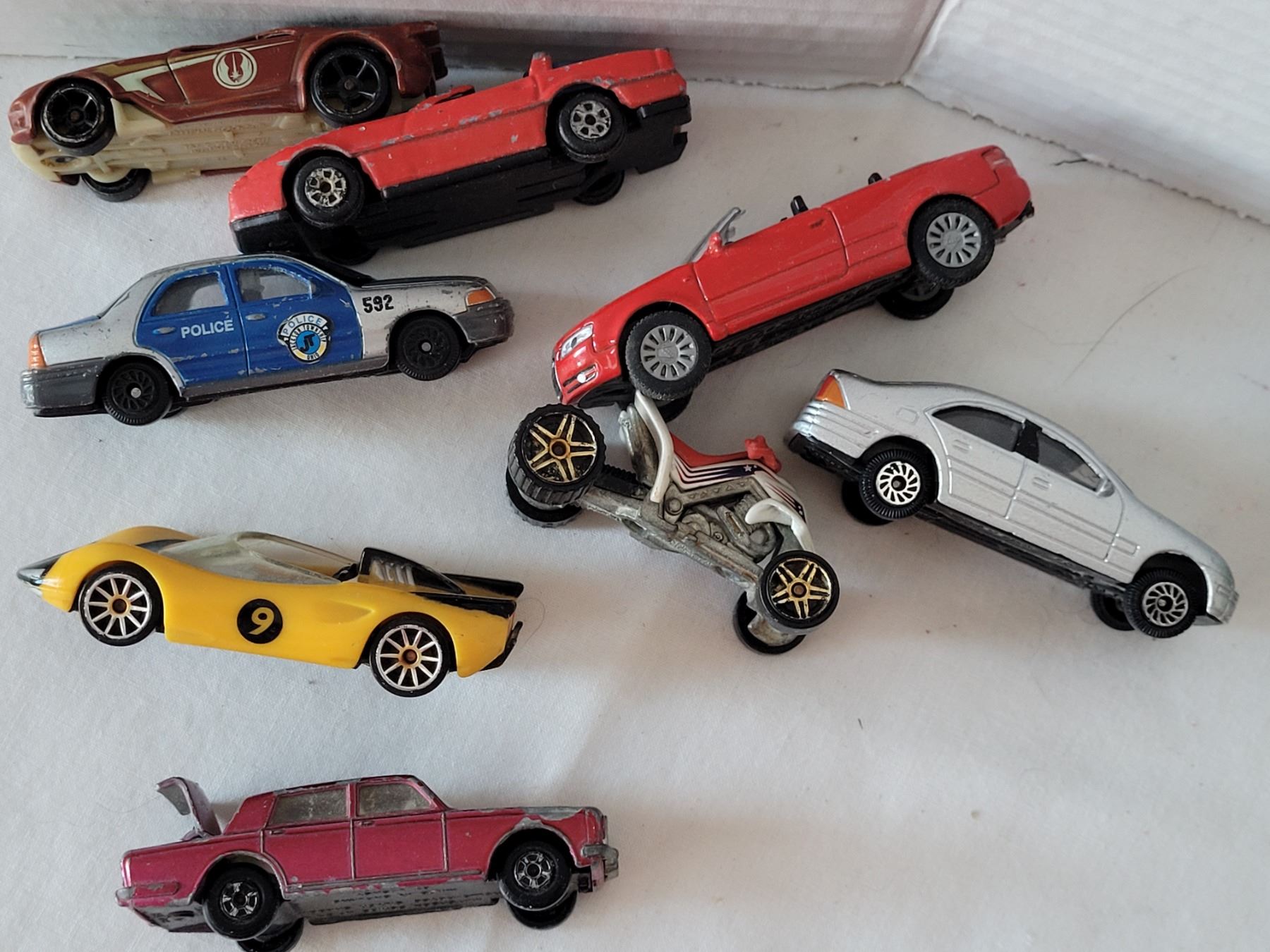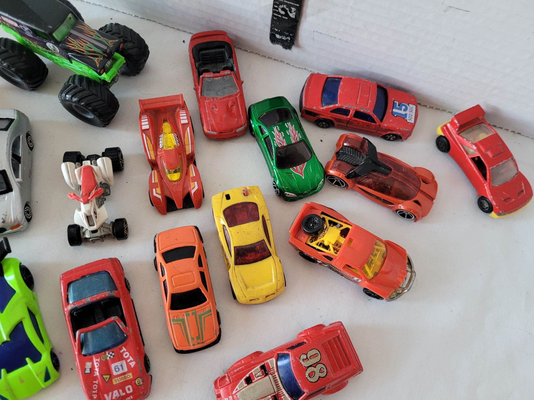 Group of small vintage diecast cars, including Hot wheels & Matchbox.