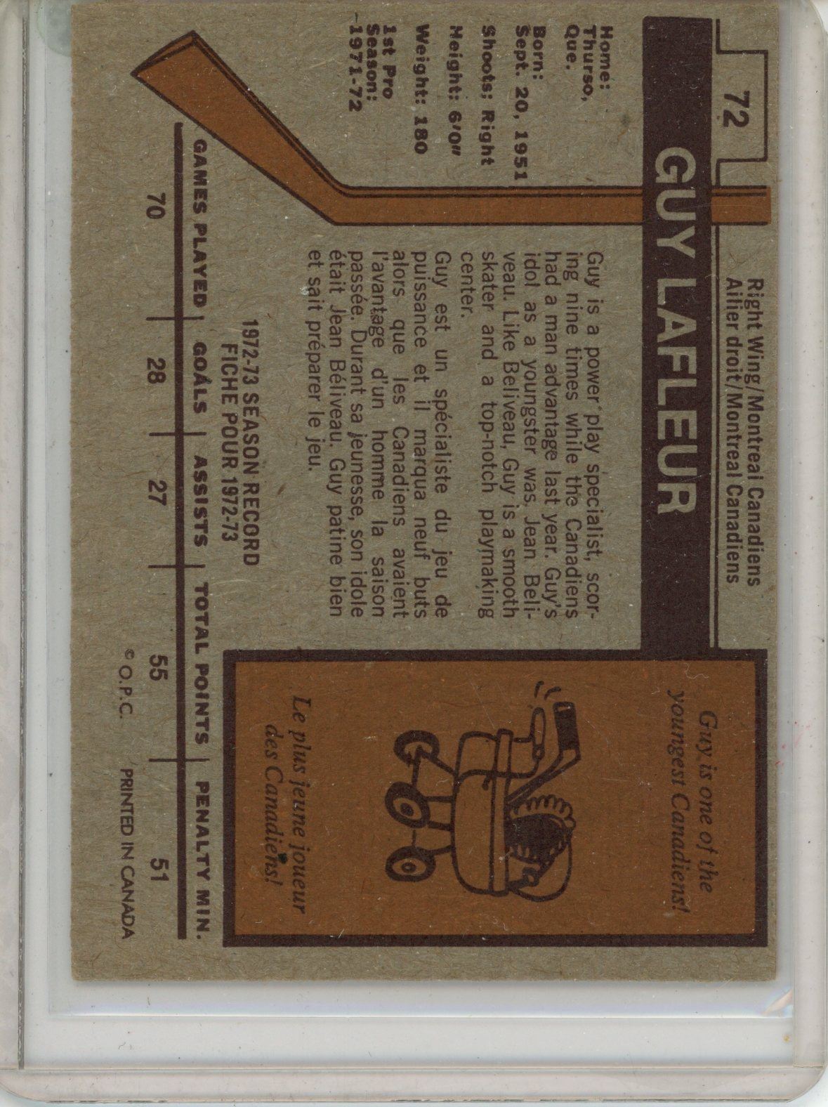 Guy Lafleur Montreal OPC 1973-74 Mint