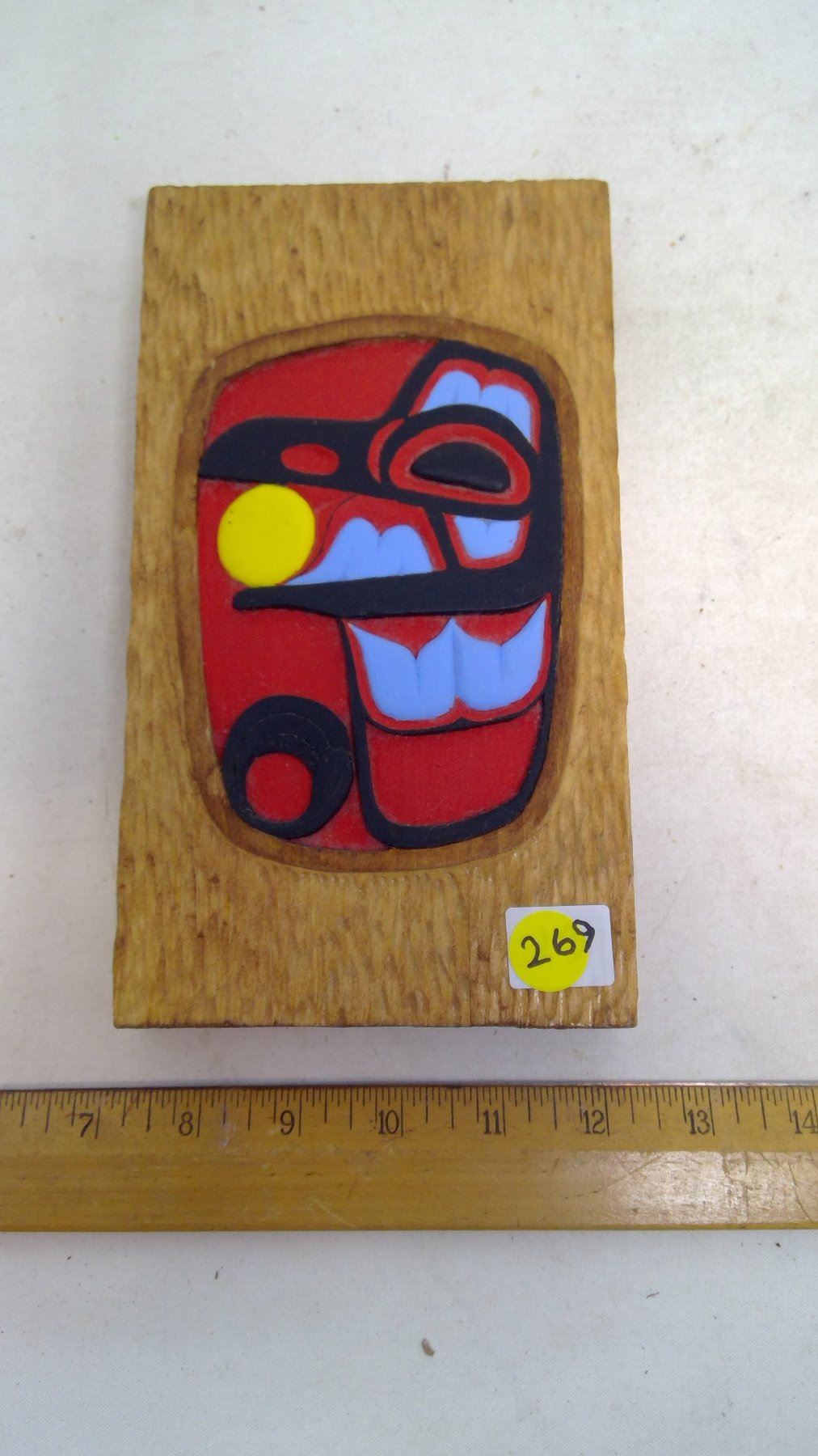 HAND CARVED AND HAND PAINTED WOOD WALL HANGING - RAVEN EATS SUN