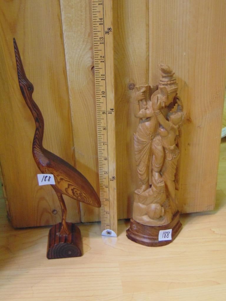 HAND CARVED WOOD BIRD & ORNATE WOOD FIGURE