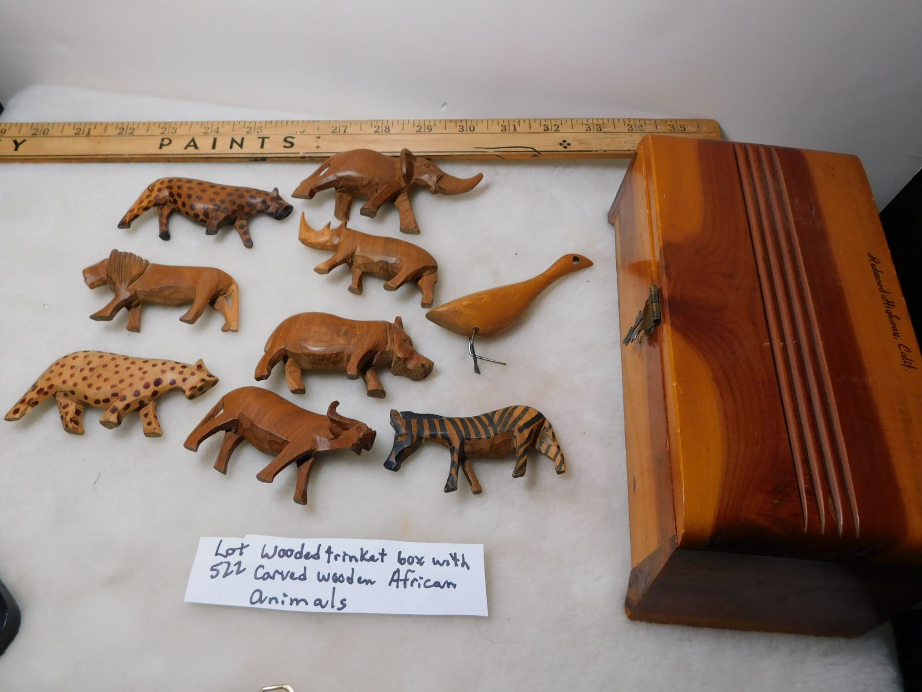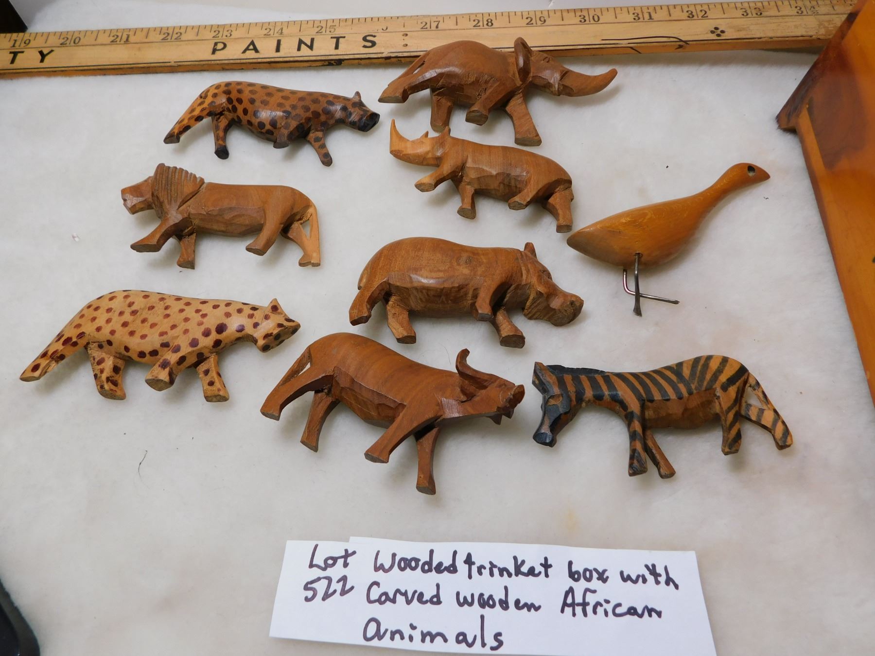 HAND CARVED WOODEN AFRICAN ANIMALS WITH TRINKET BOX