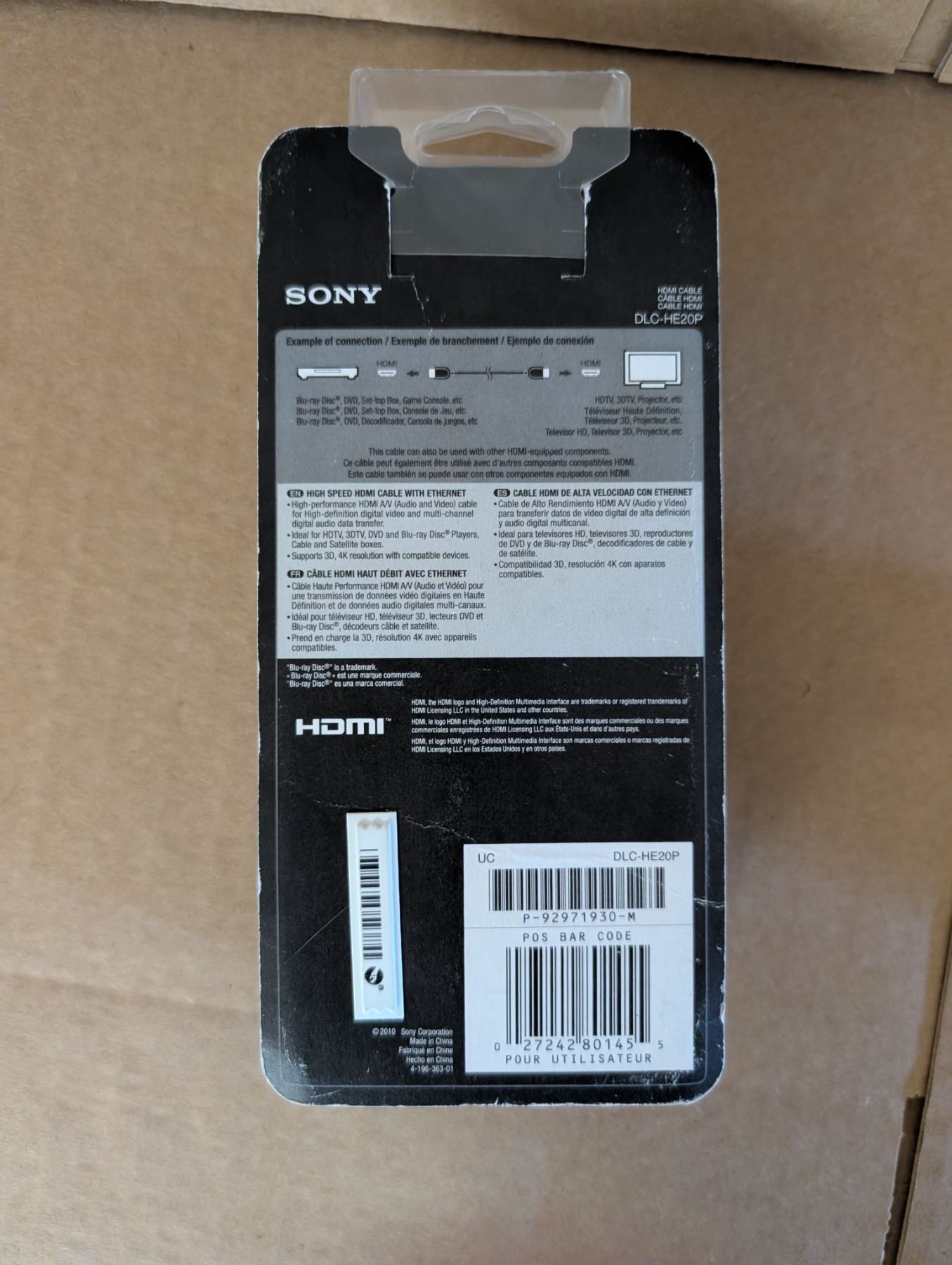 HDMI-High Definition Multimedia Interface, High Speed Home Cable with Ethernet, never used, in unopened package.