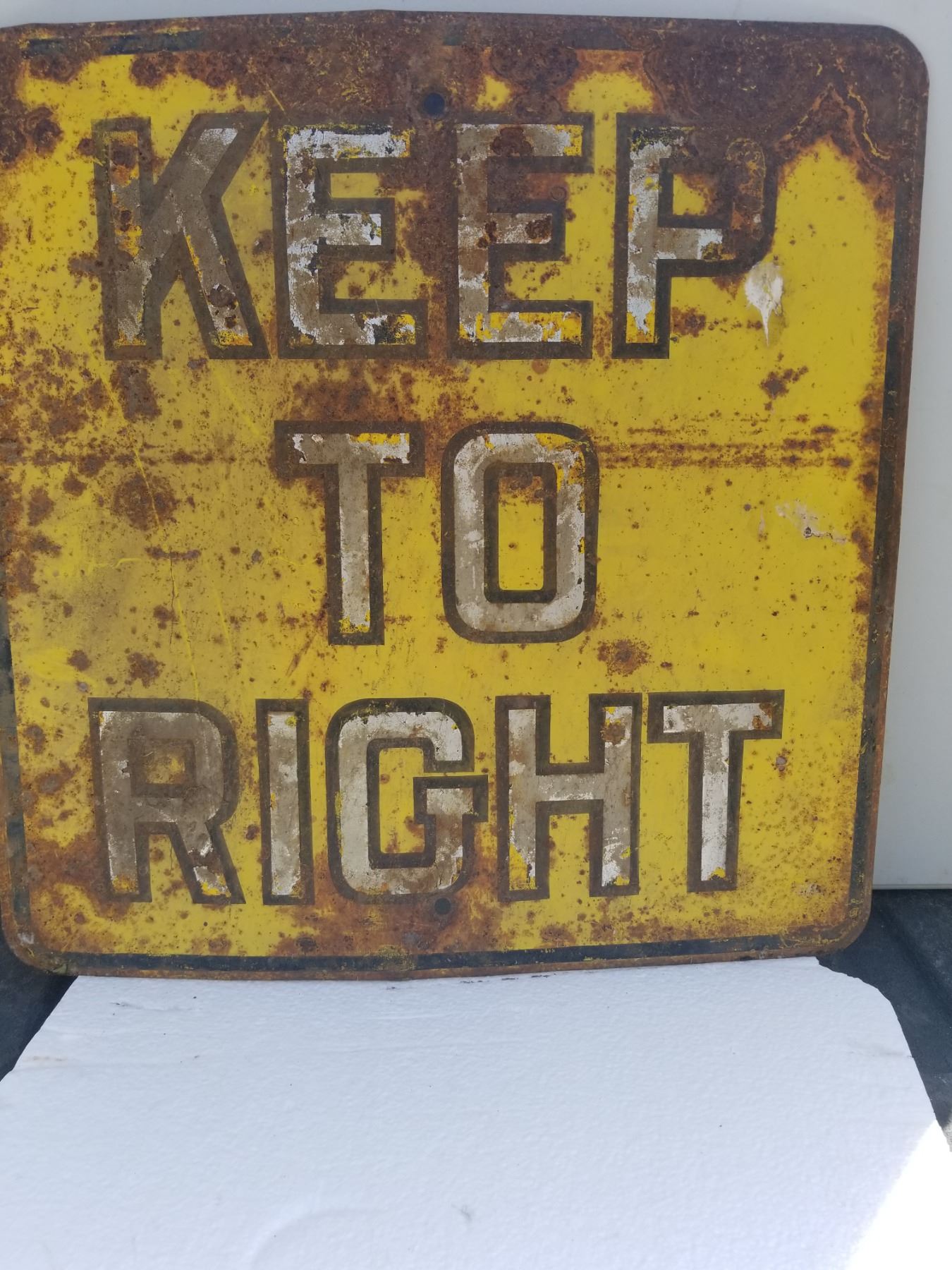 HEAVY STEEL EMBOSSED ROAD SIGNS (1940'S) *KEEP TO RIGHT* (2' X 2')