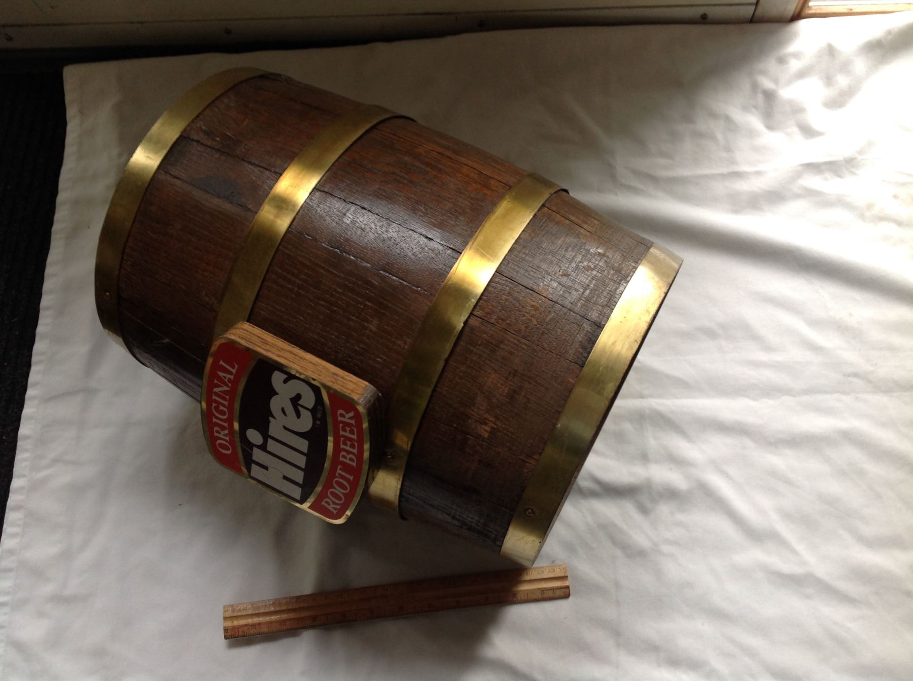 HIRES ROOT BEER KEG WITH SIGN (WOODEN WITH METAL STRAPS)