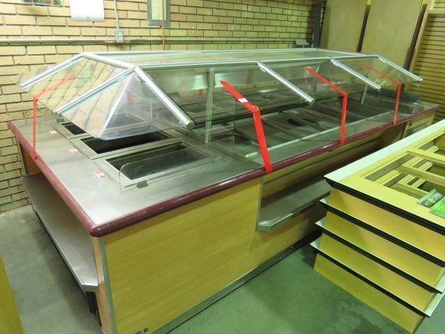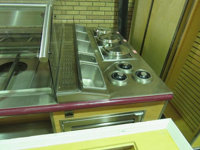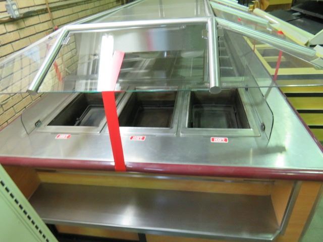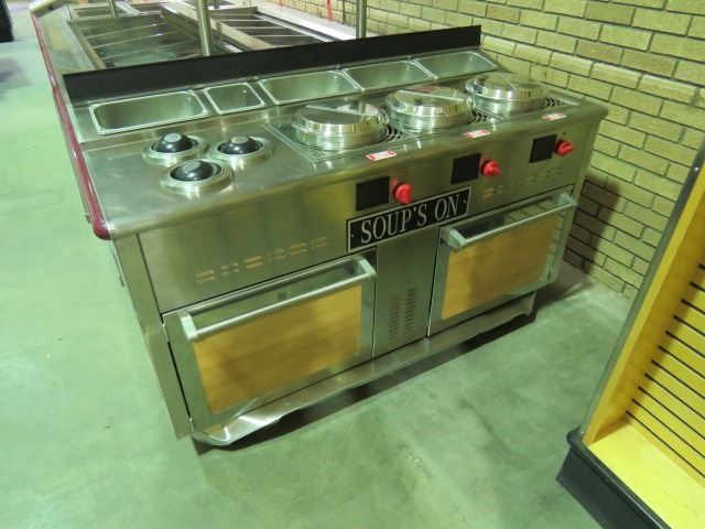 HOT AND COLD BUFFET STATION W/ 3 SOUP WARMERS, SALAD BAR AND 3 HOT STATIONS. OVER $40,000.00 NEW, IN WORKING ORDER, VERY NICE UNIT!