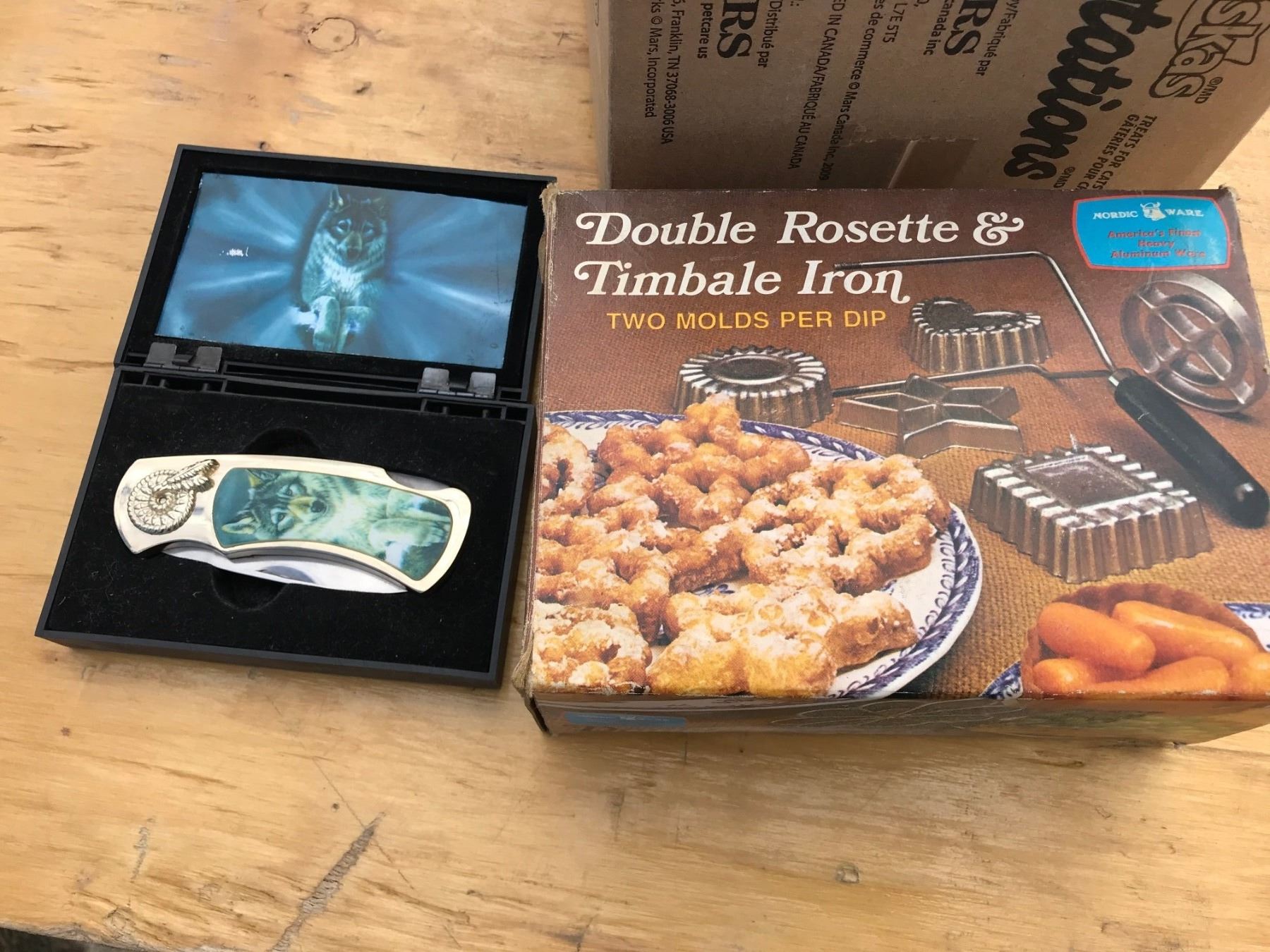 HOUSEHOLD ITEMS (GOLD WOLF POCKET KNIFE + 2 POCKET KNIFES)