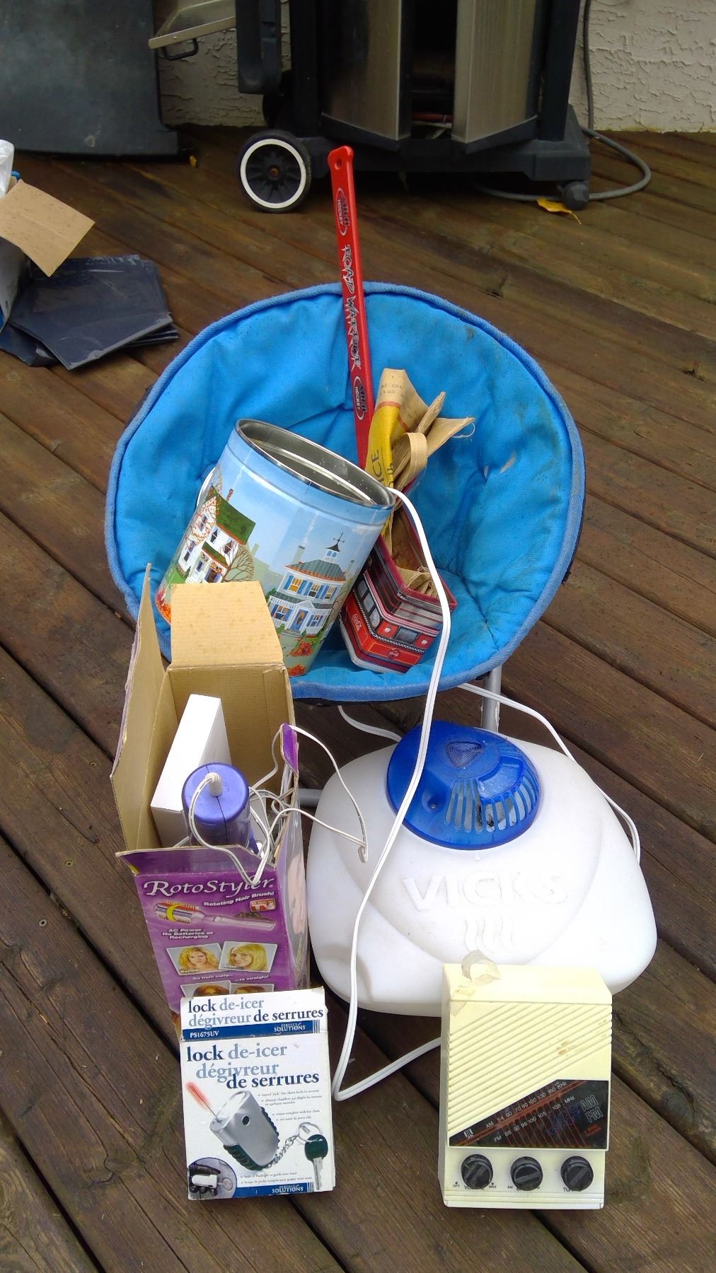 WAVE HAIR IRON,, CHILDRENS CHAIR, VICK'S HUMIDIFIER, ECT.