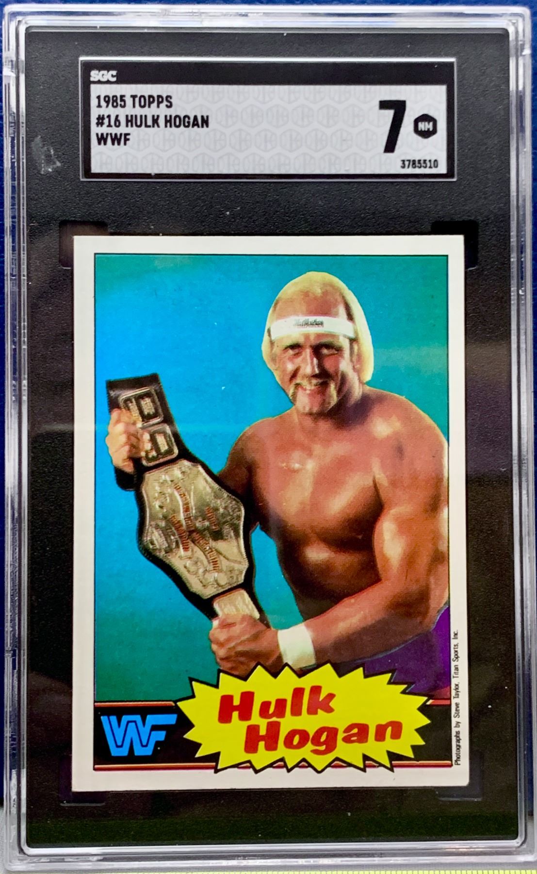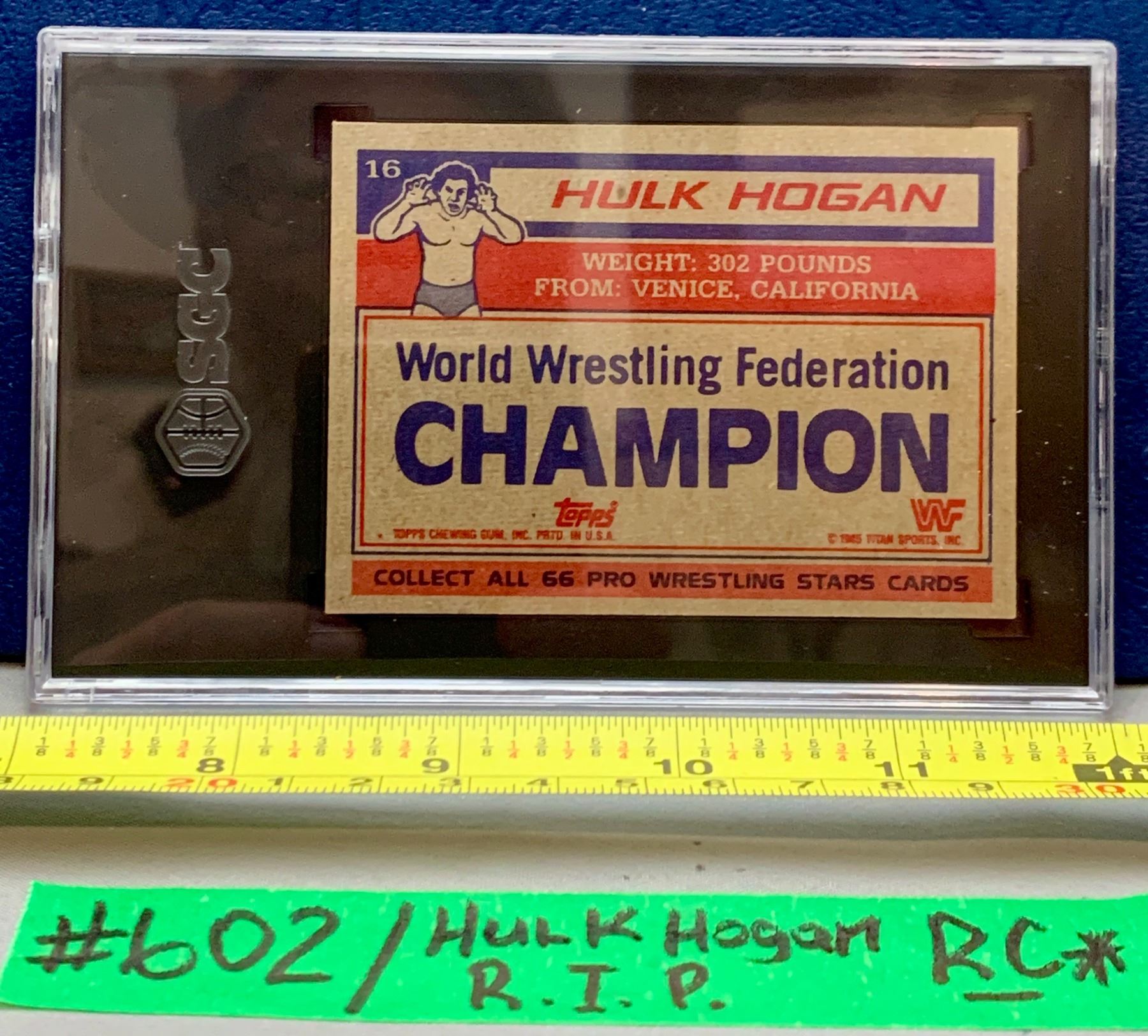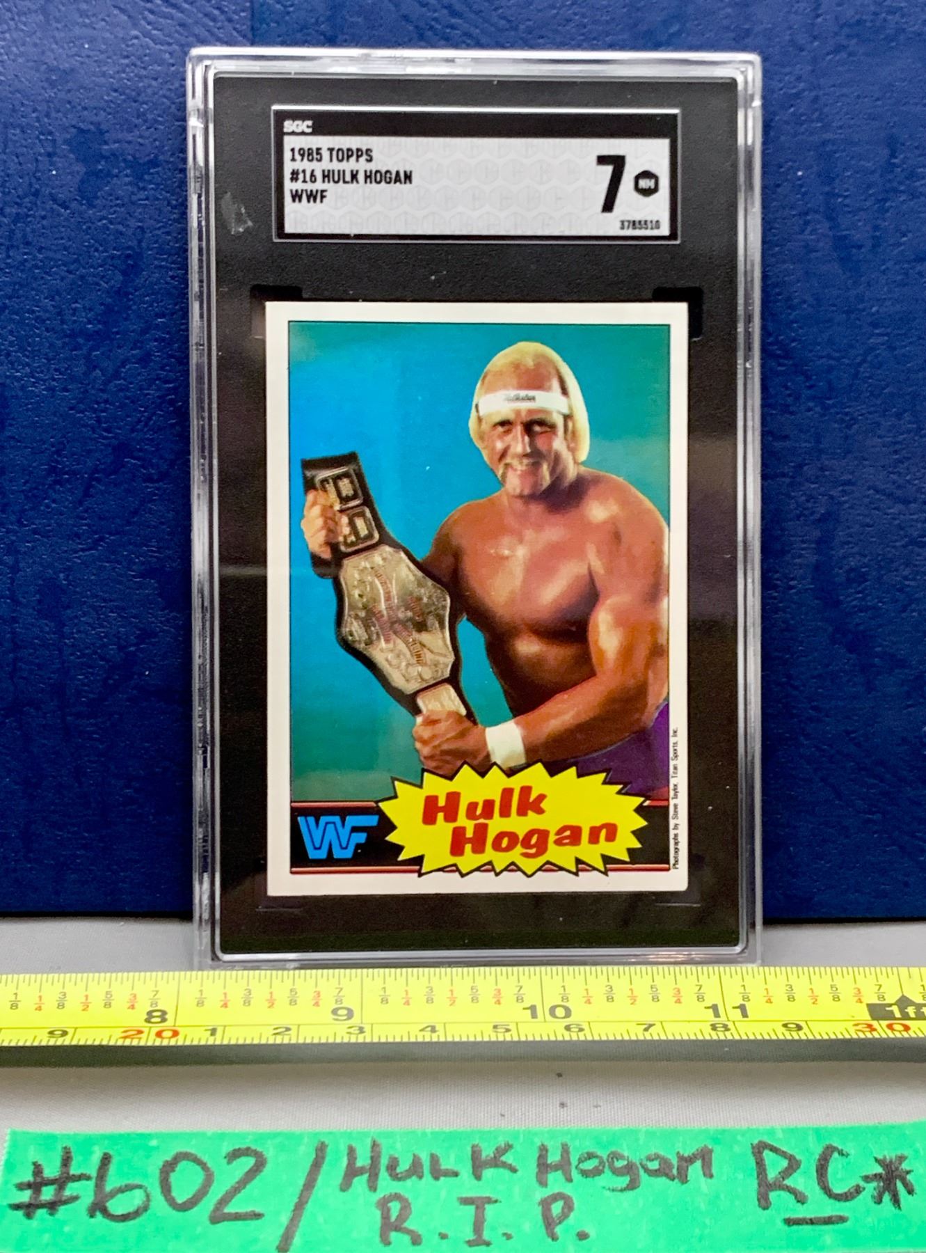 HULK HOGAN #16 (RIP) 1985 Topps WWF Wrestling ROOKIE Card - Rare Blue Version Graded 7