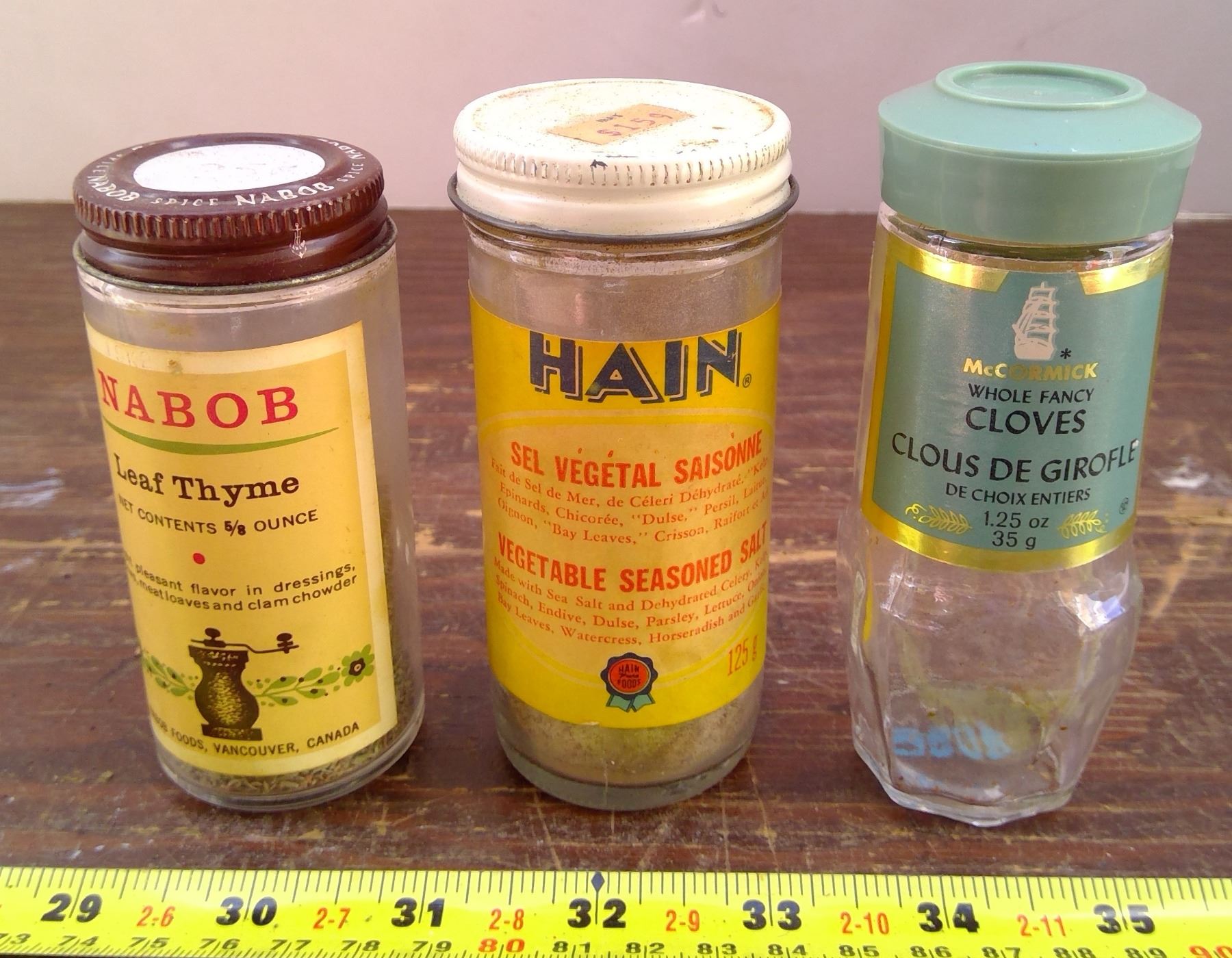 Hain Sea Salt, Nabob Leaf Thyme, McCormick Cloves