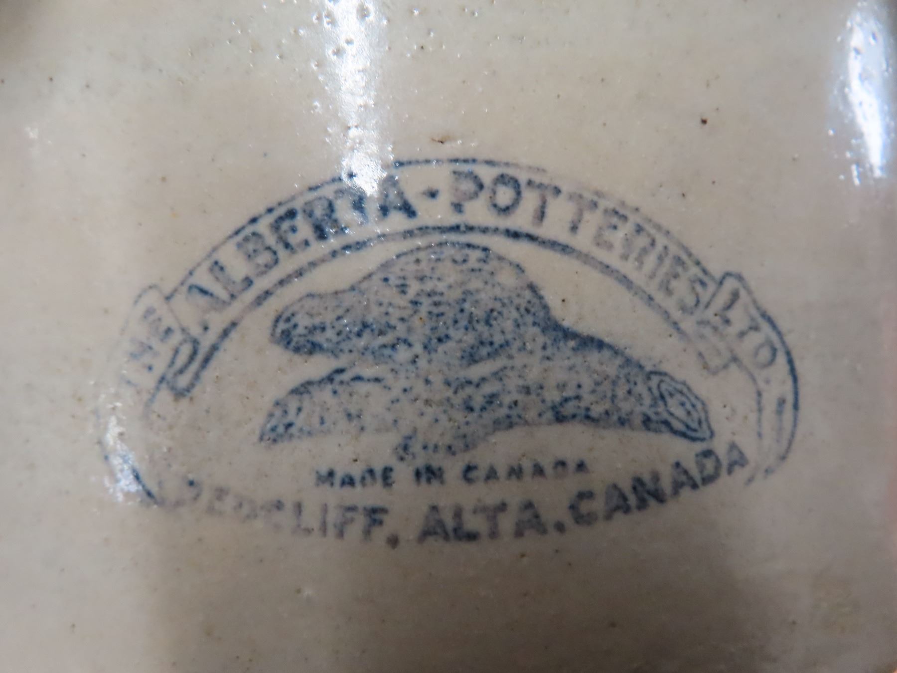 Half gallon butter crock-alberta potteries -rare beaver