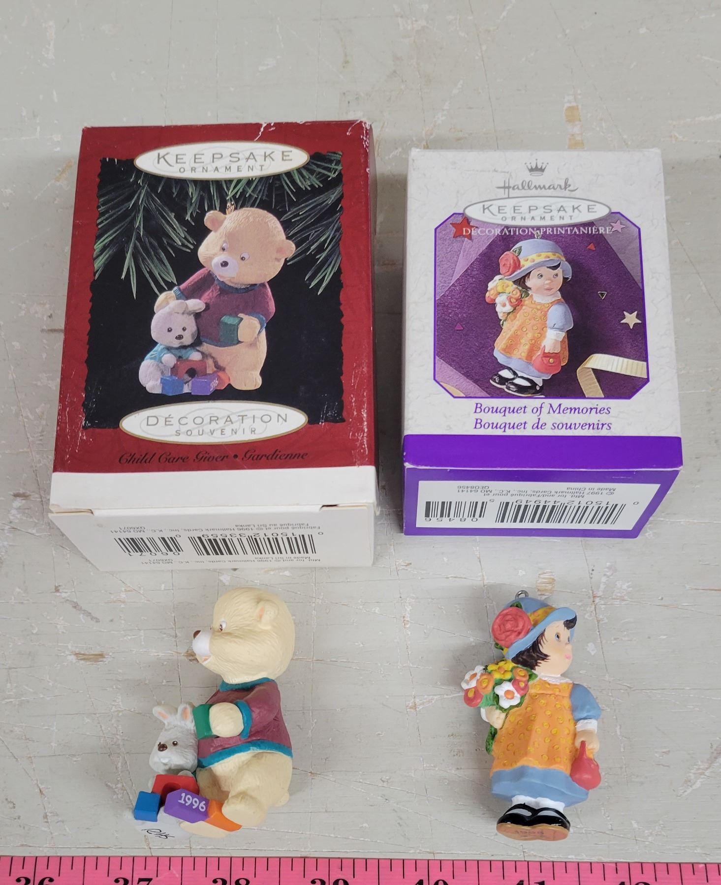 Hallmark Keepsake Ornaments Child Care Giver '96 and Bouquet of Memories