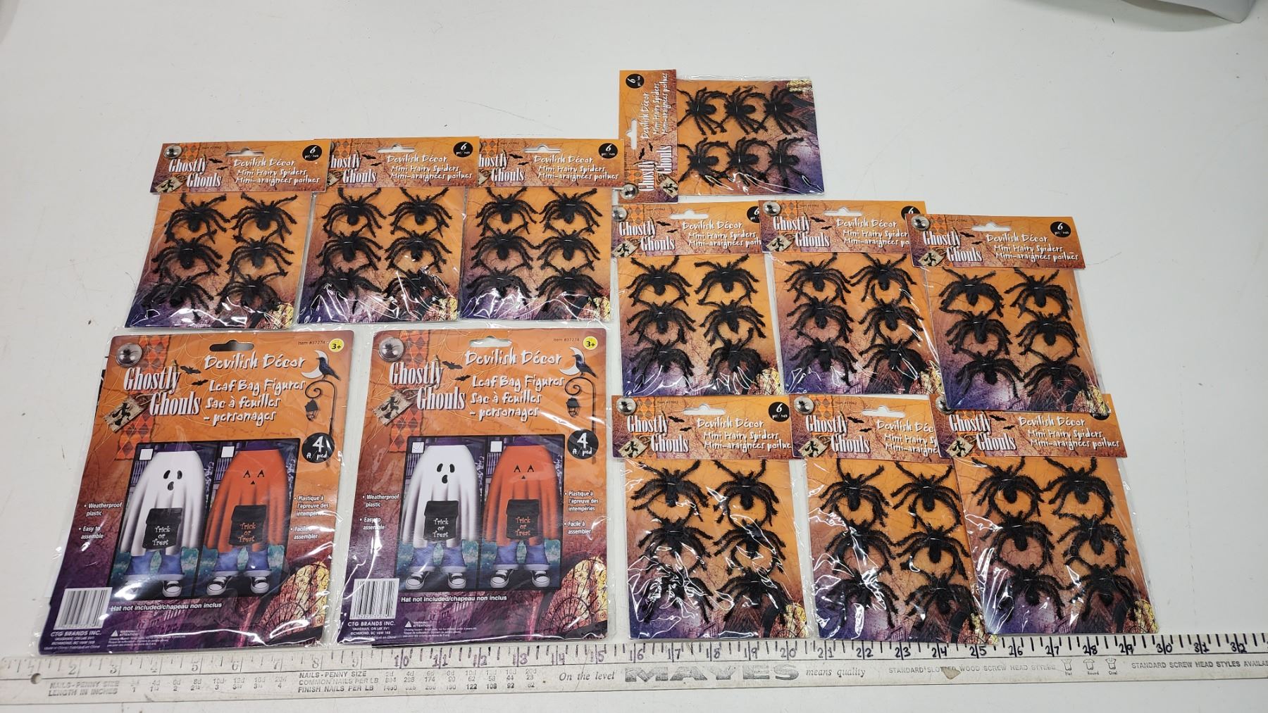 Halloween décor - leaf bags and fake spiders