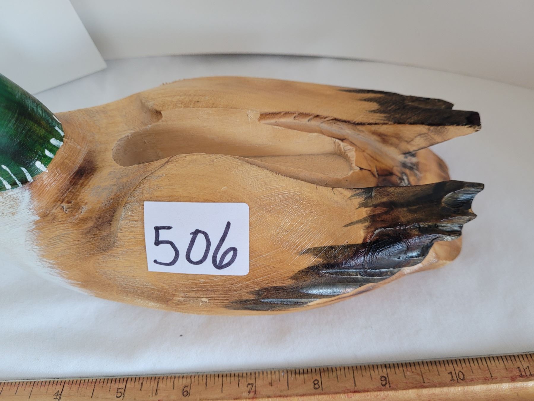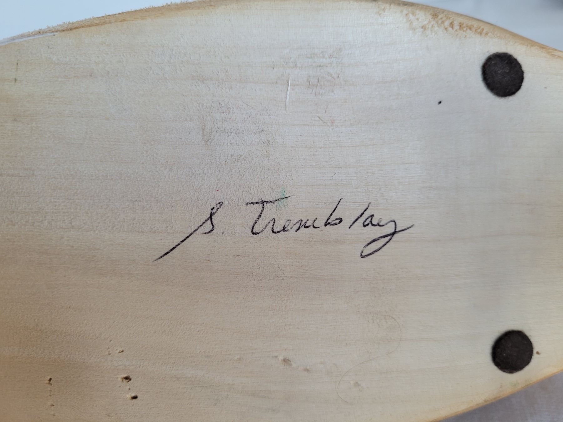 Hand carved loon for business cards. Made by S. Tremblay.