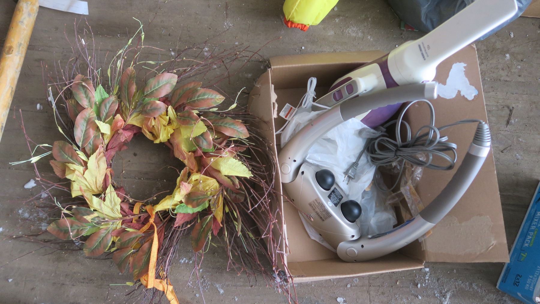 Hand held vacuum + neck massager + fall wreath