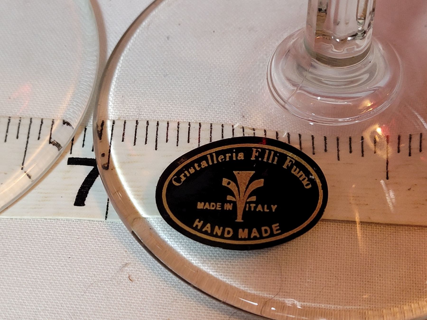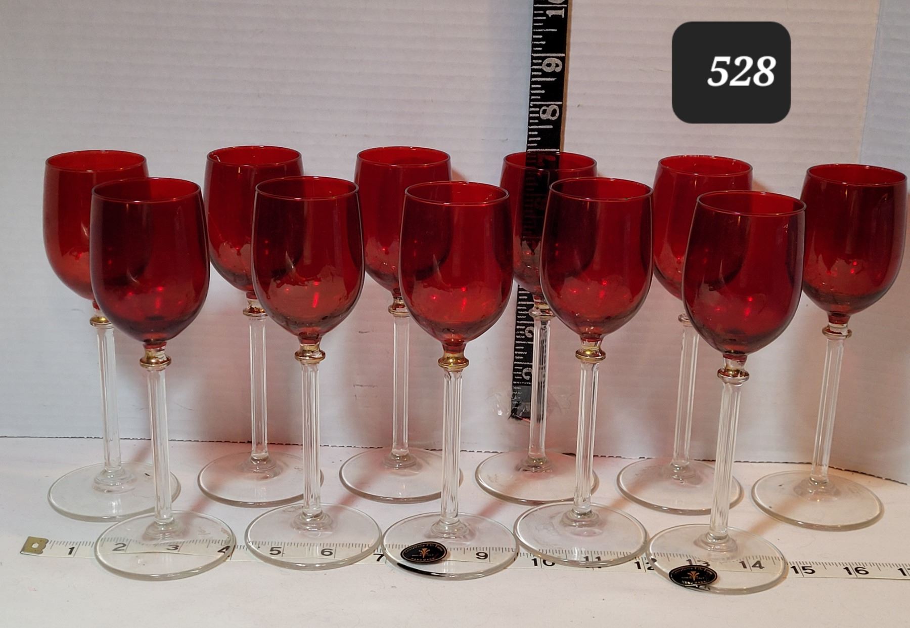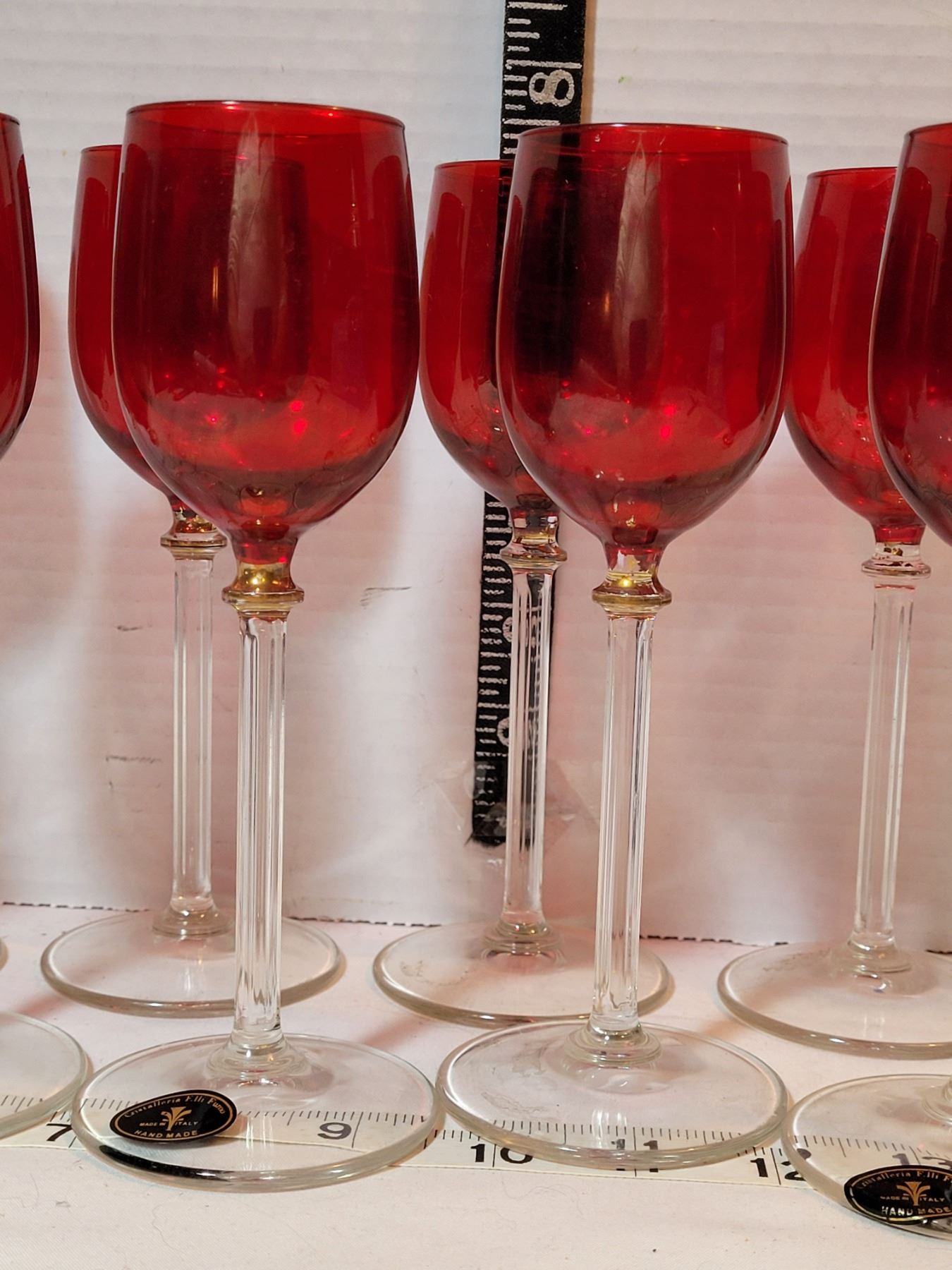Hand made crystal, Cranberry red wine glasses. Made in Italy. Cristalleria F.lli Fumo