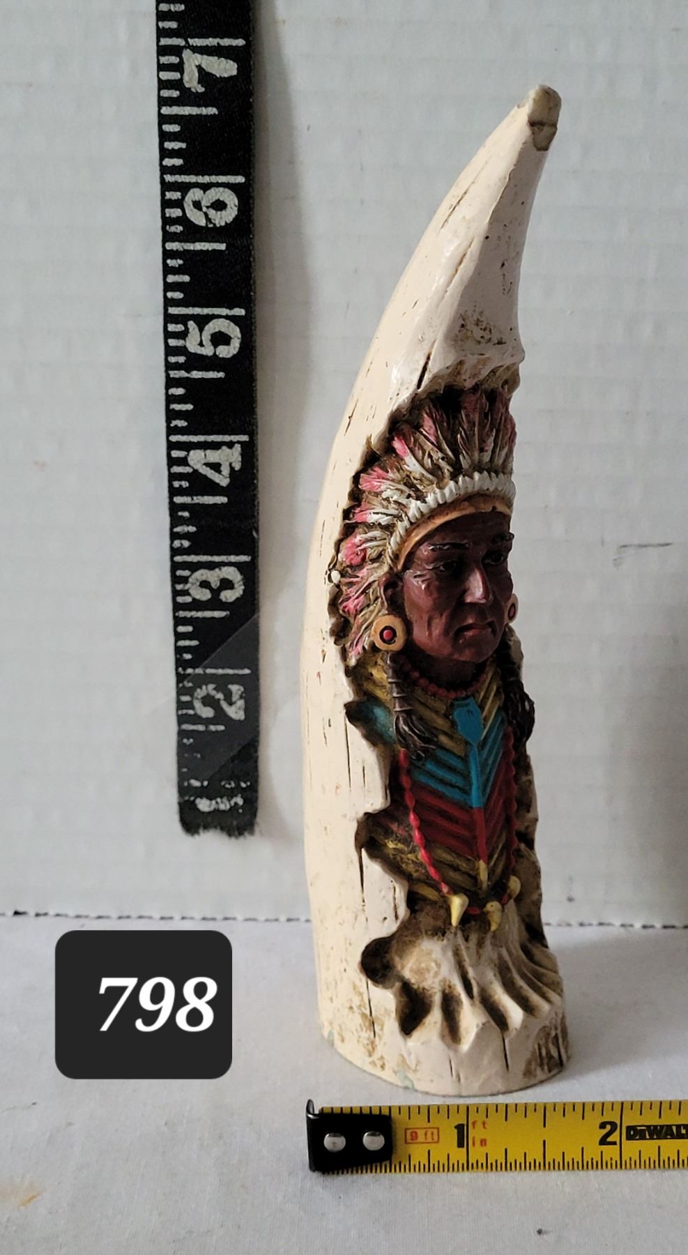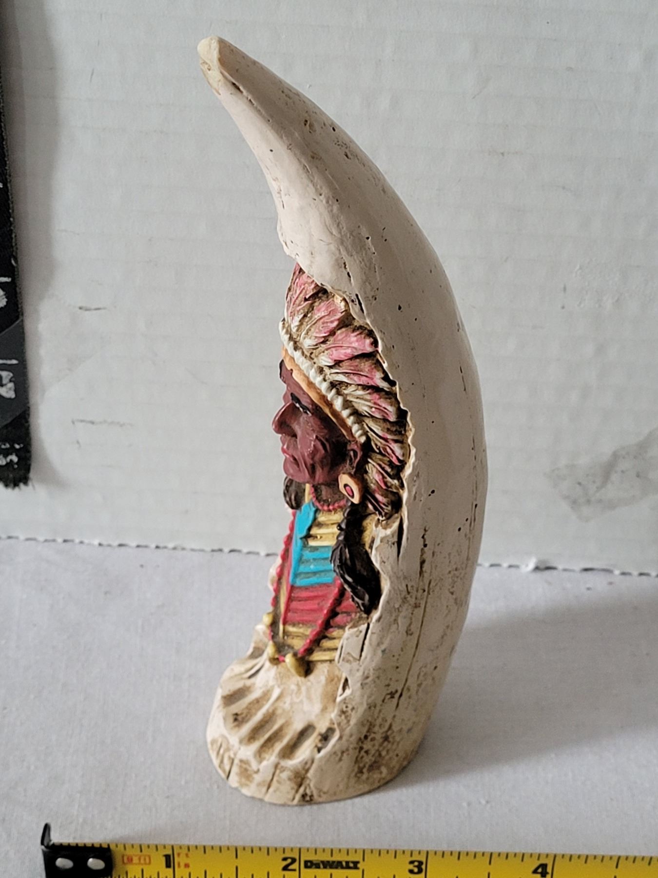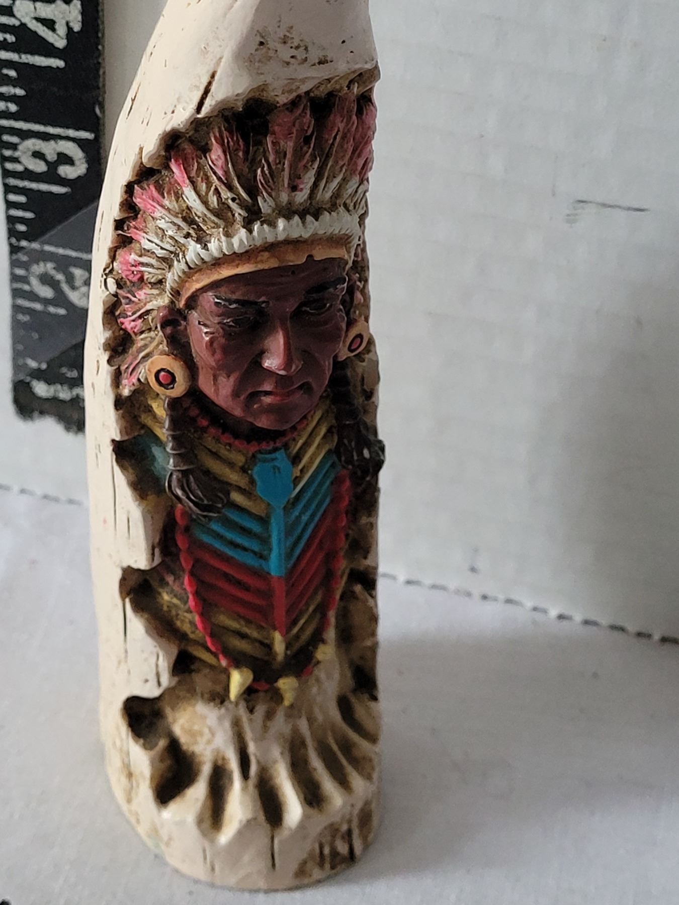 Hand painted Cherokee native american chief. 6” poly stone sculpture.