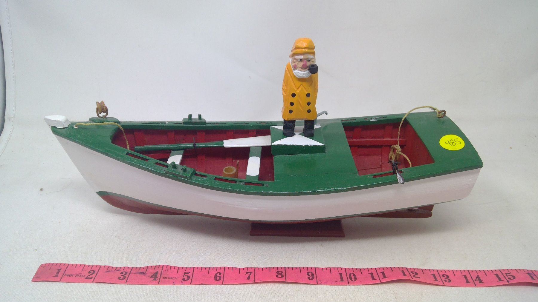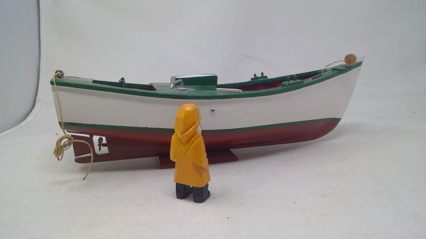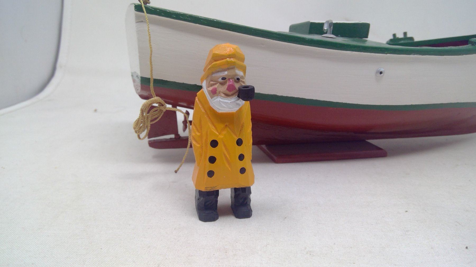 Handcrafted Wooden Newfoundland Fishing Boat & Sailor