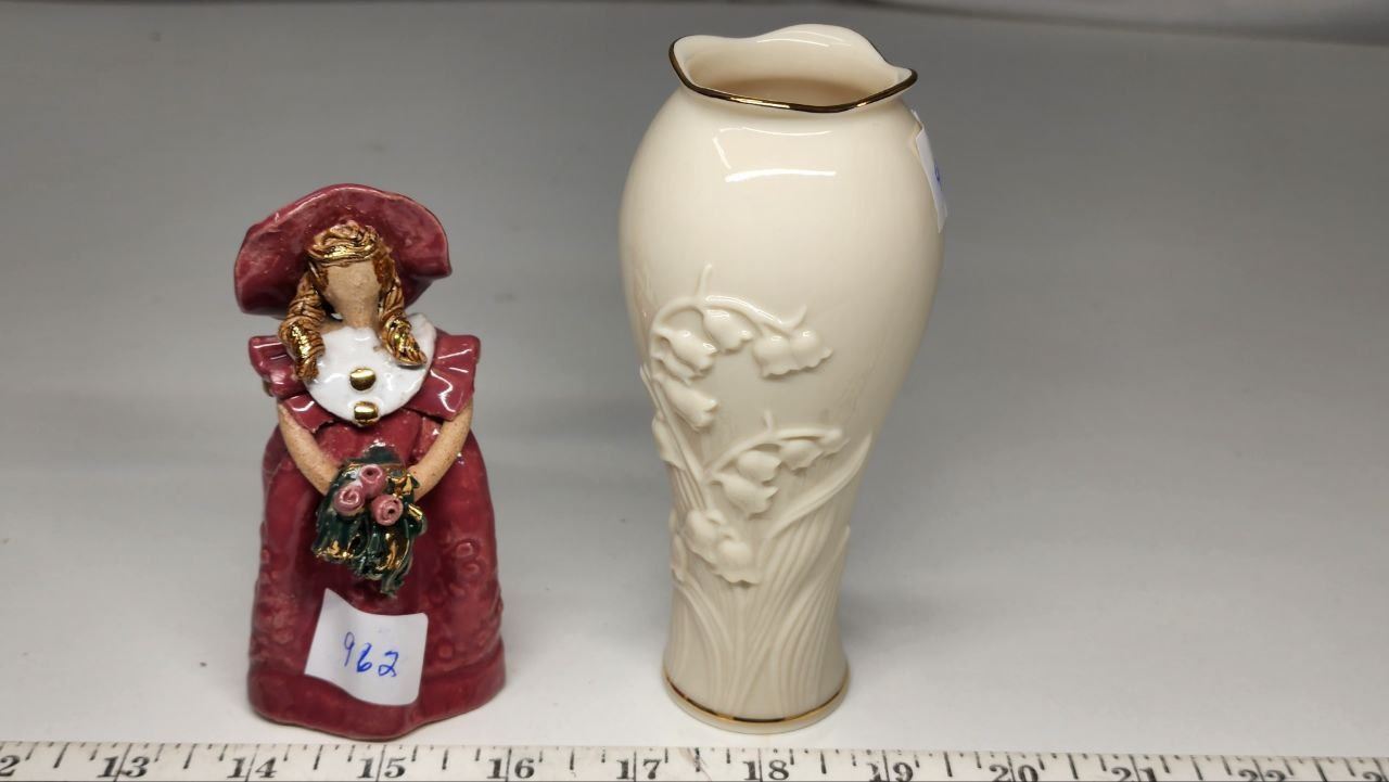 Handcrafted (small 51/2 inch) gold rimmed flower vase & Flower Girl