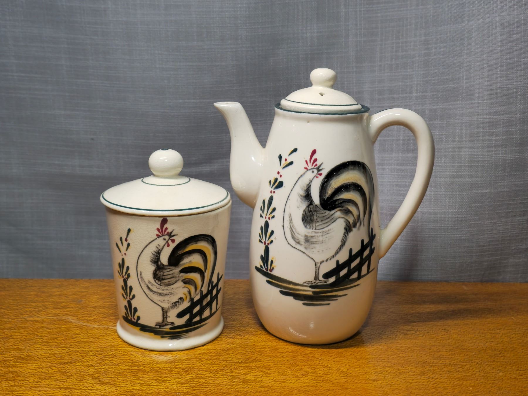 Handpainted Stanford rooster painted teapot and cannister