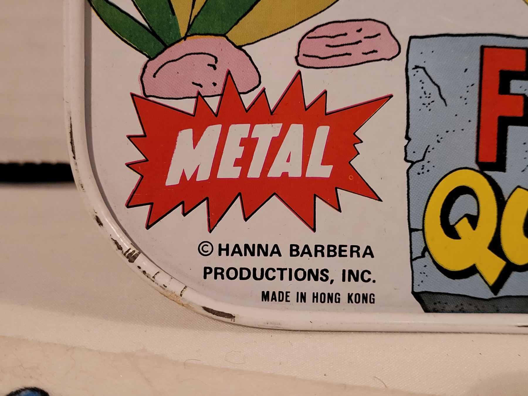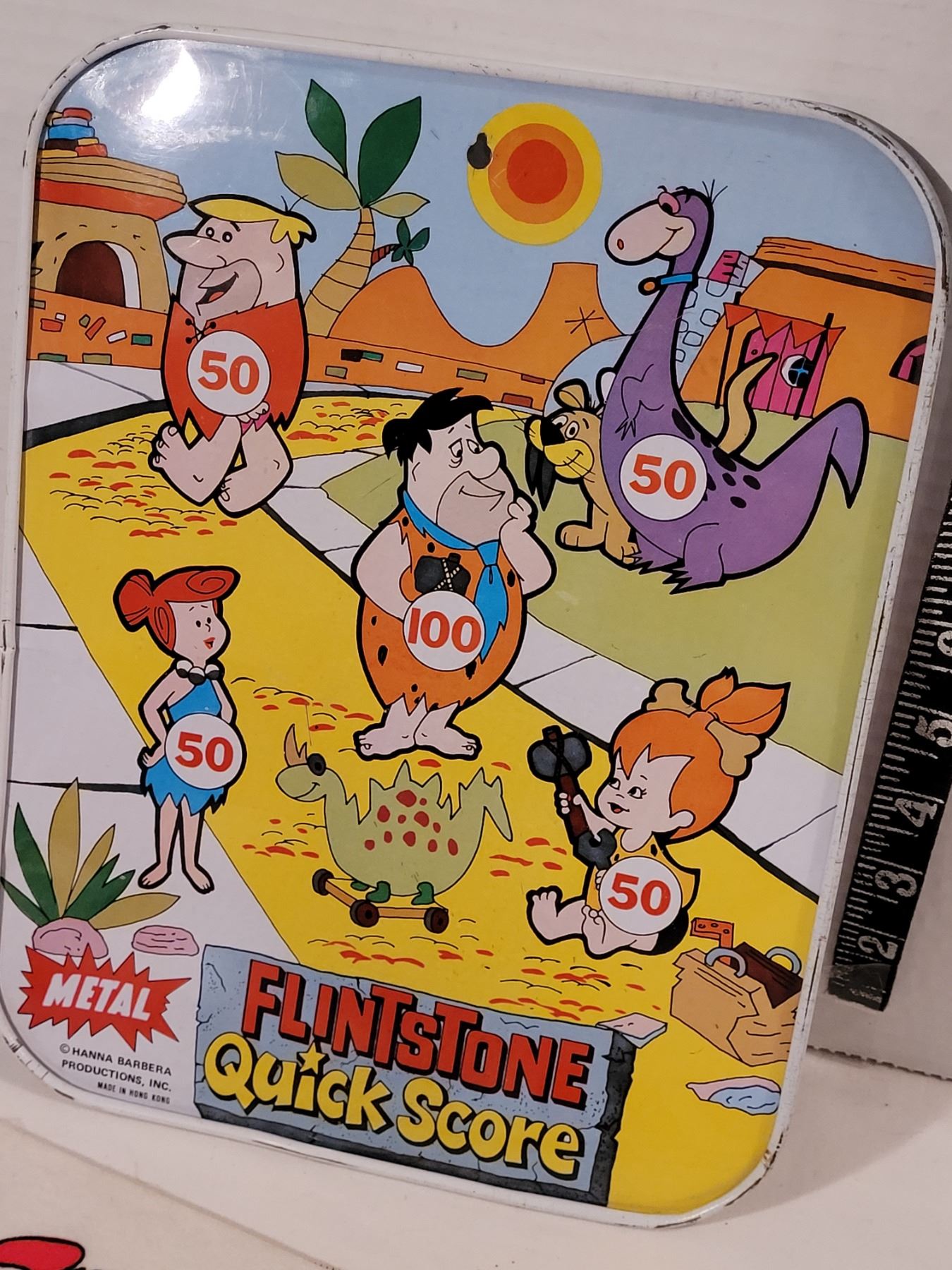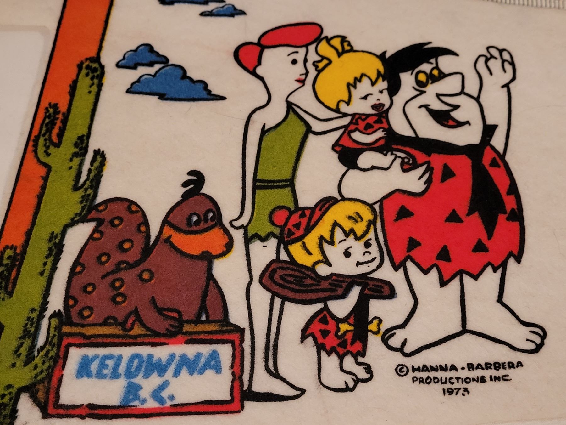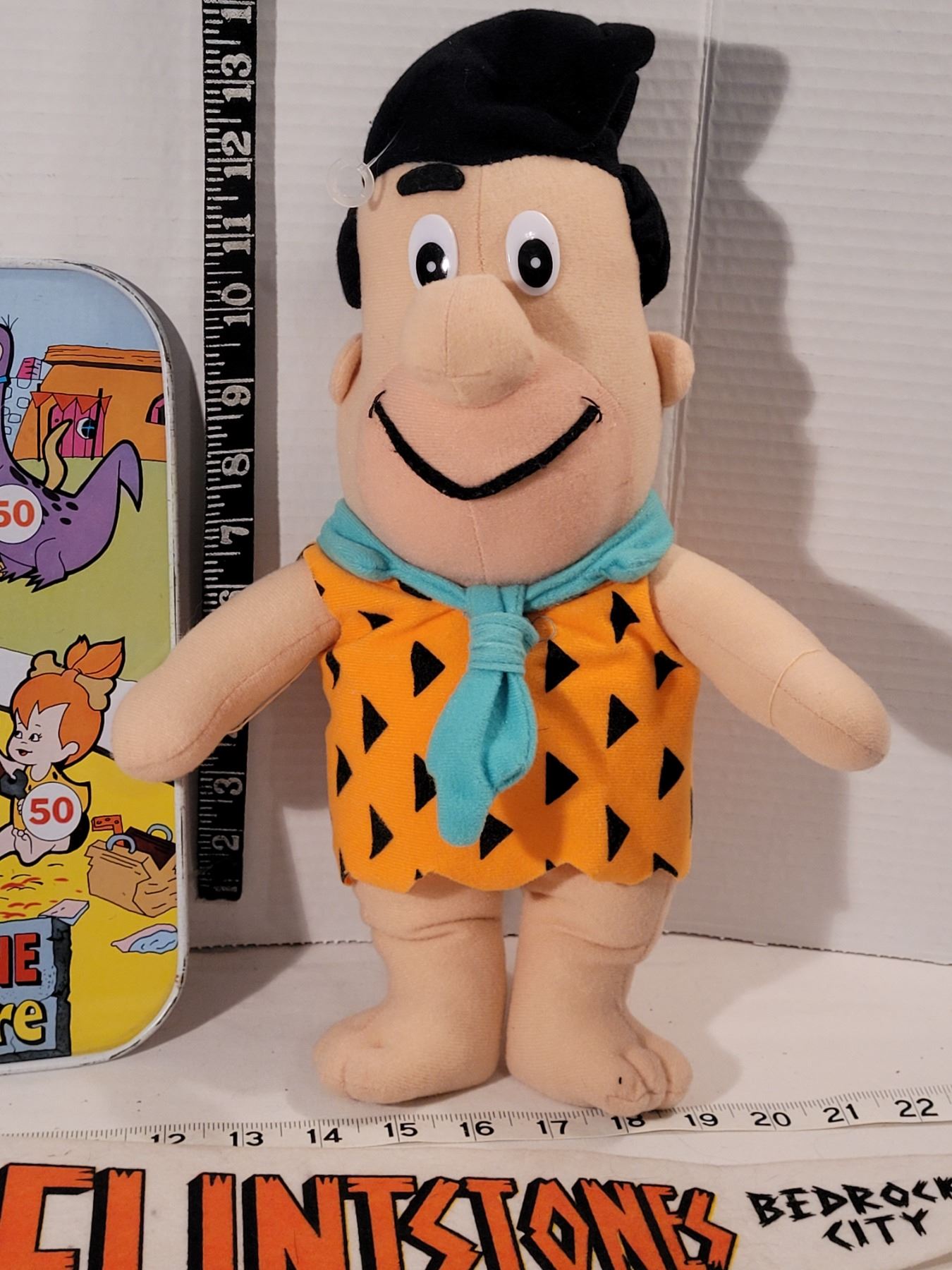 Hanna Barbera vintage Flintstones metal dart board, 1973 pennant & plush Fred Flintstone