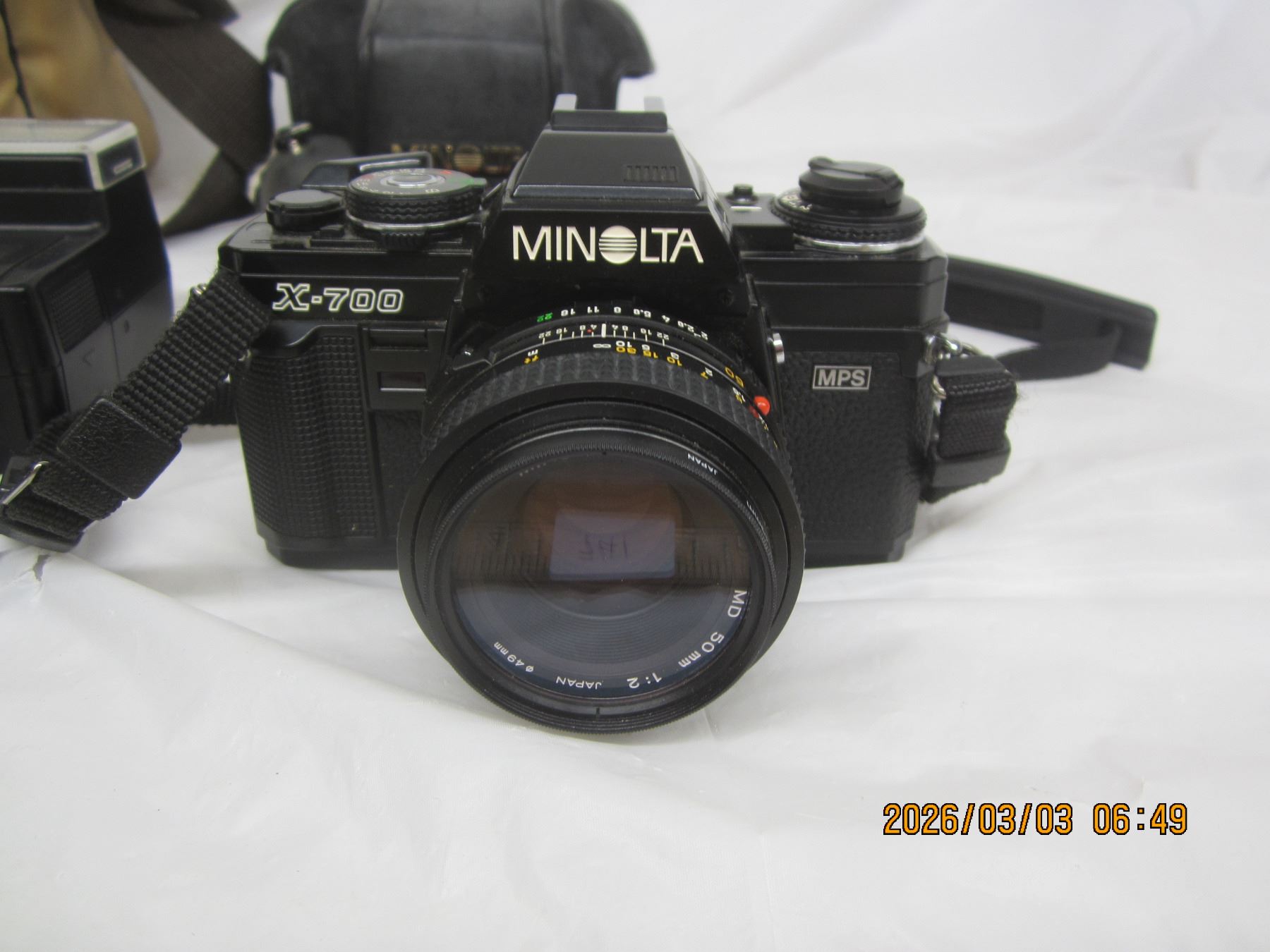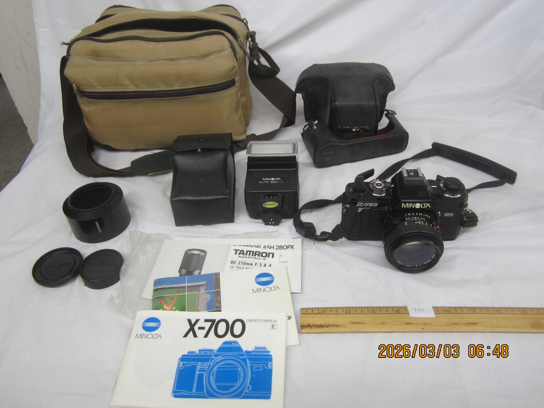 Hard to Find Minolta X-700 35mm Camera Outfit Body, Lense, Lens Caps Flash, Paperwork Rare Black Edi