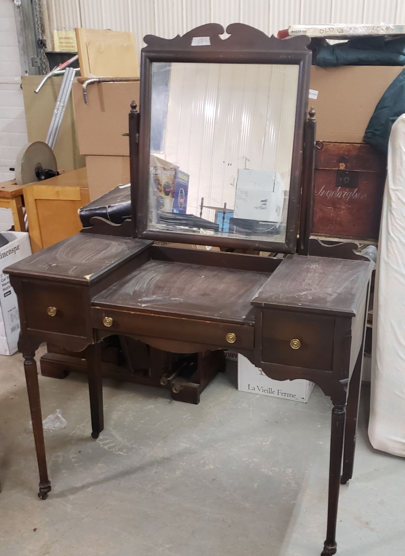 Hardwood dressing table mirror desk bedroom furniture ( from Estate) approximately 42" w mirror 21" wide inside frame