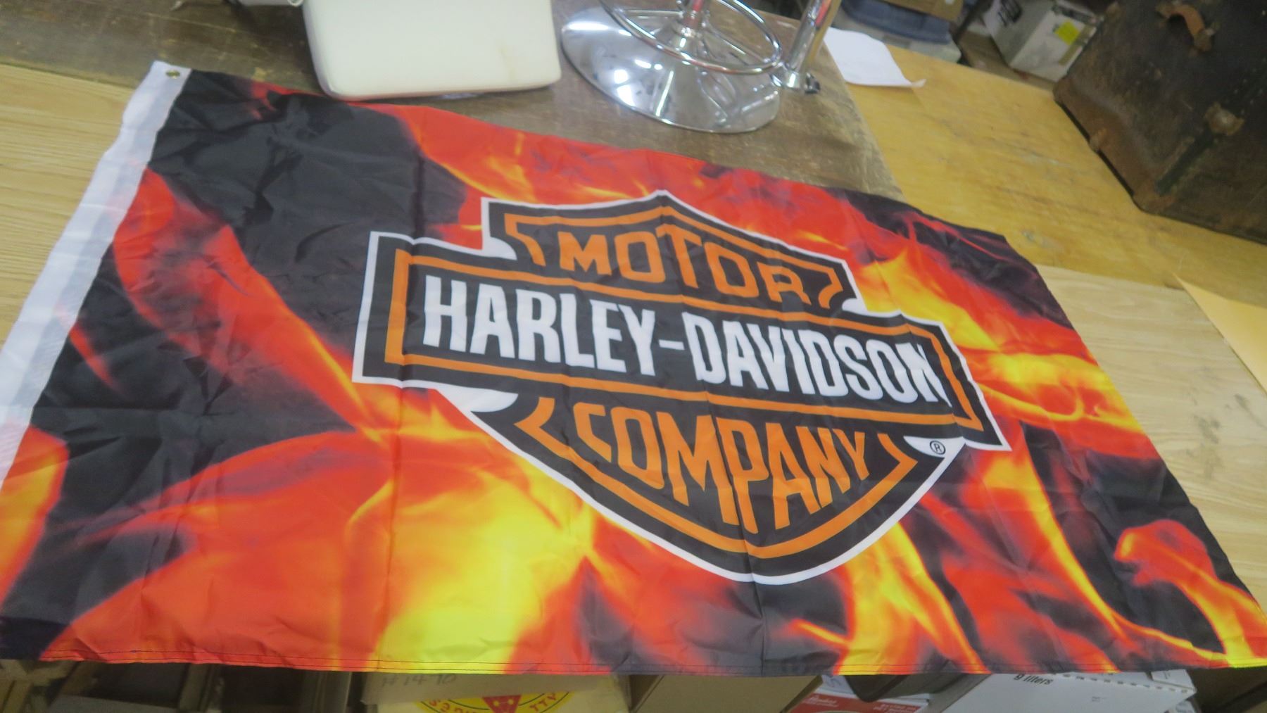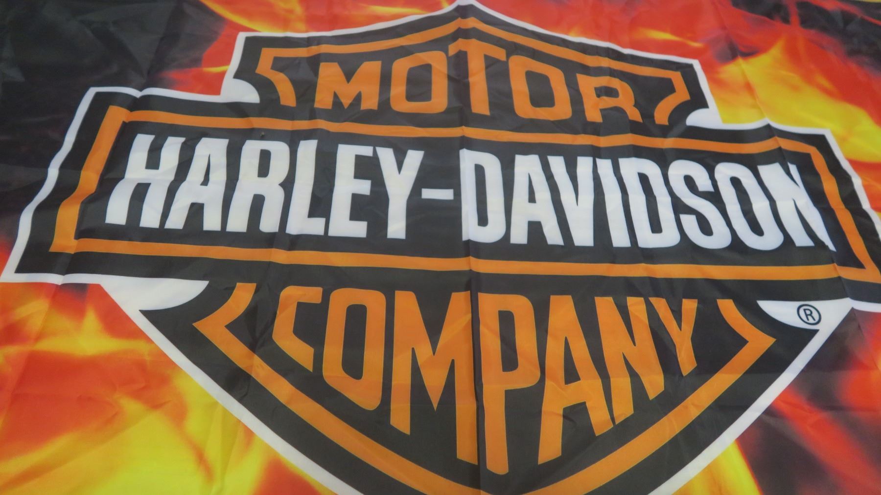 Harley-Davidson Badge logo with flame background
