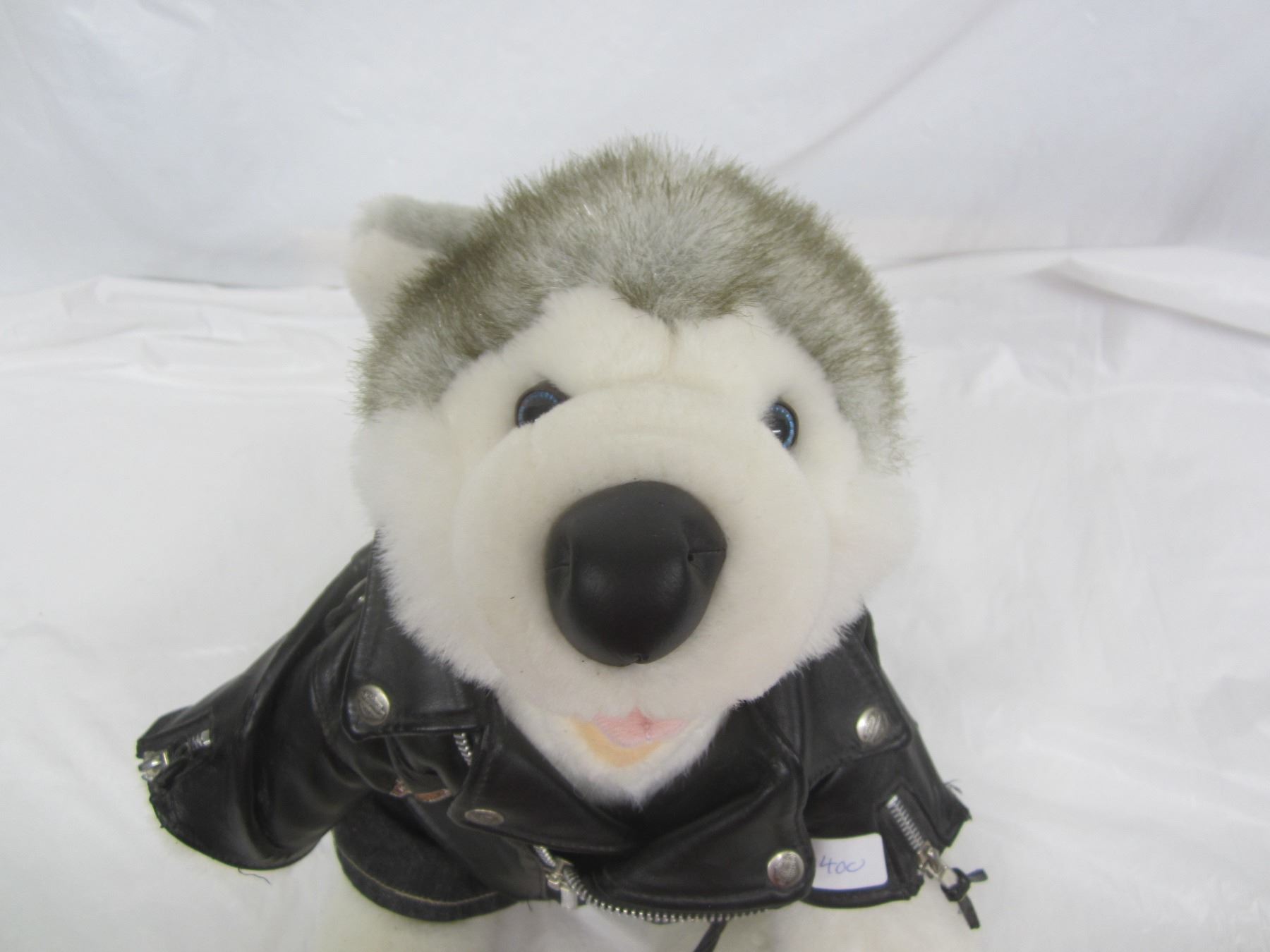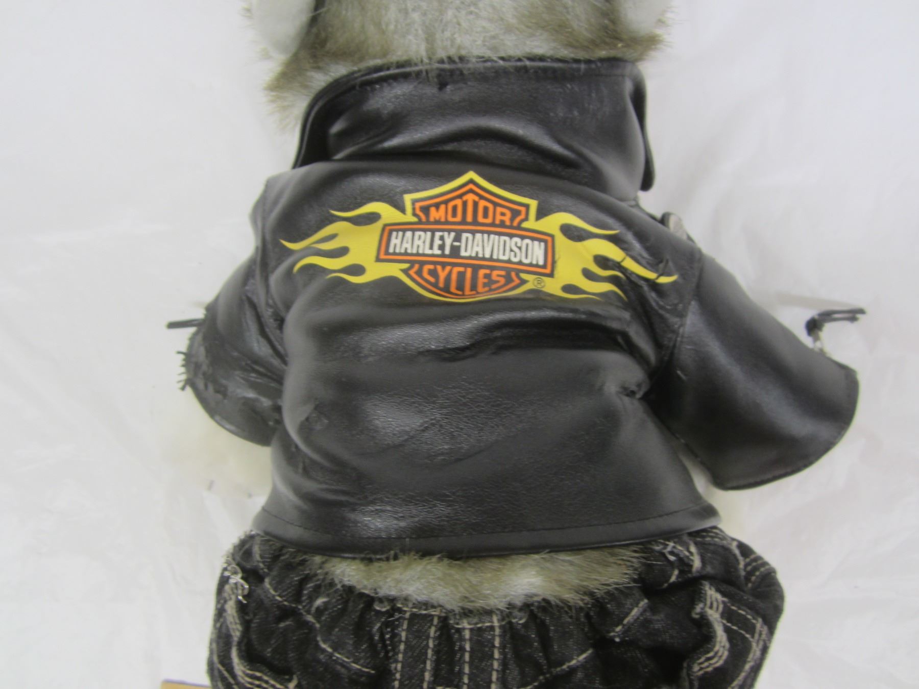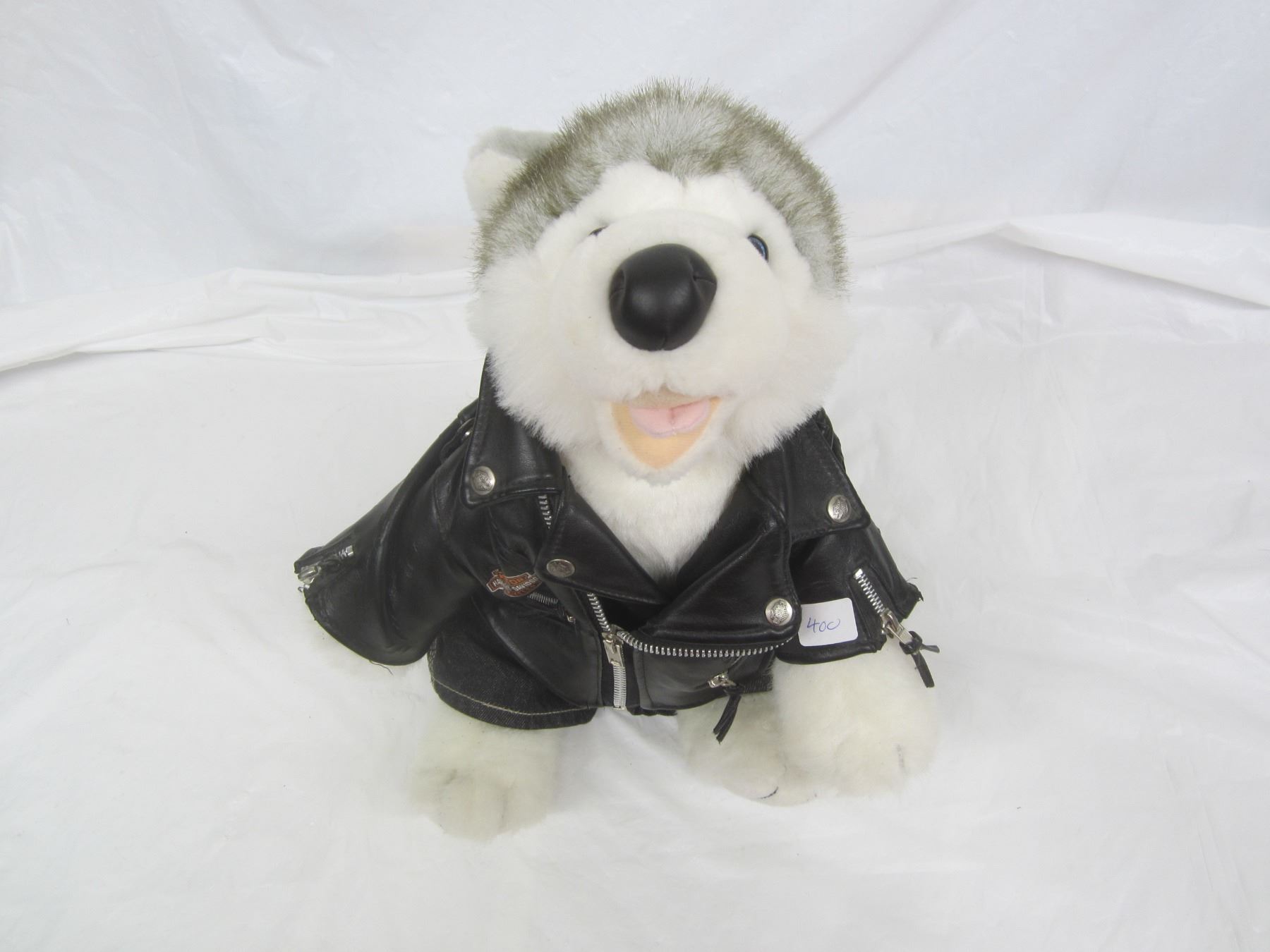 Harley Davidson Stuffed Husky Dog Wearing a Leather Jacket