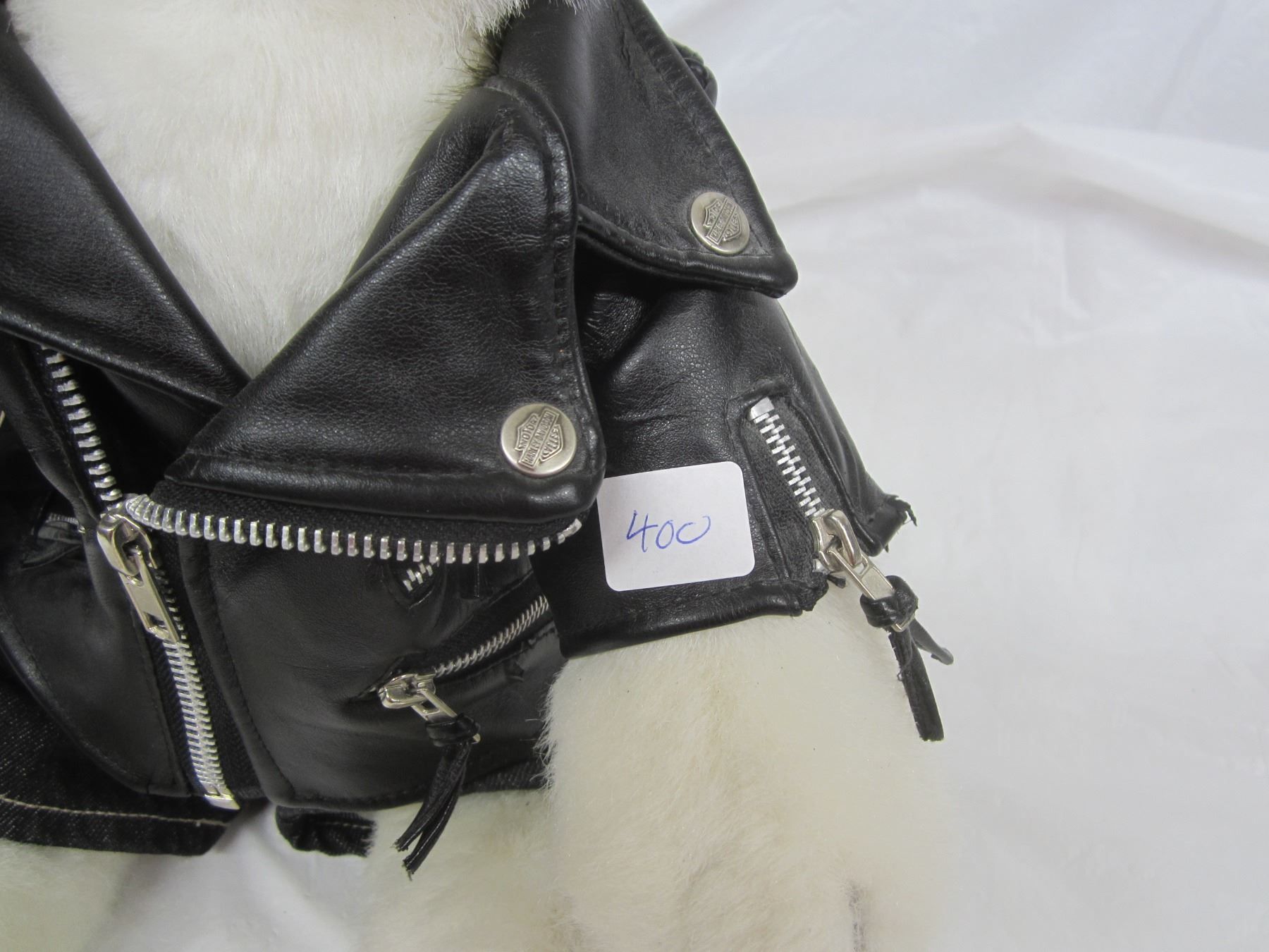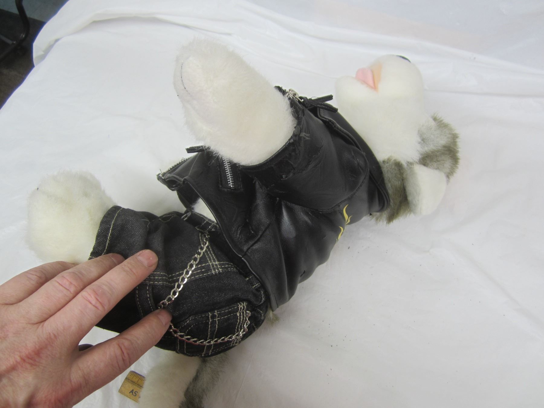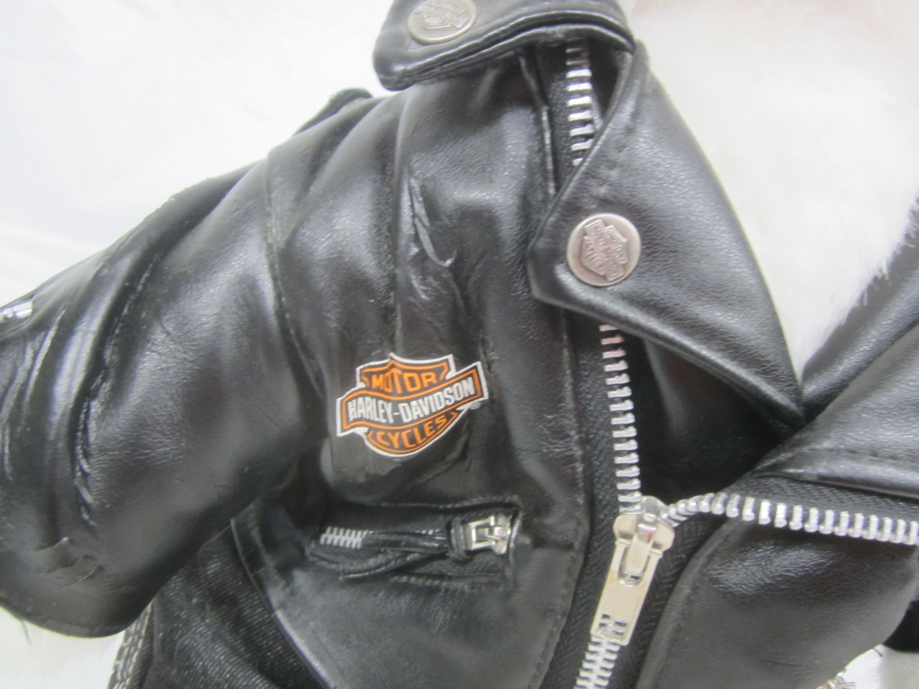 Harley Davidson Stuffed Husky Dog Wearing a Leather Jacket