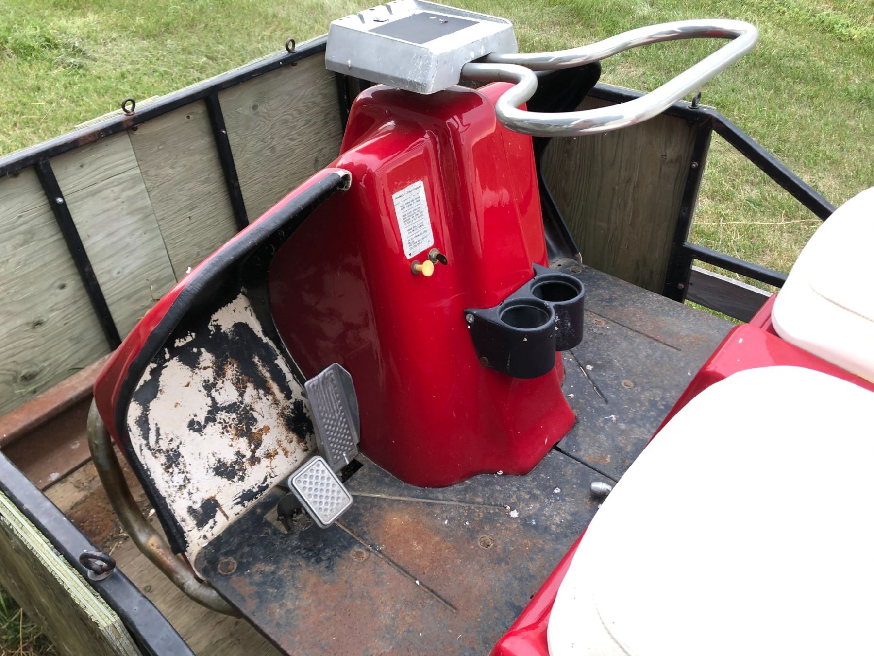 Harley Davidson golf cart, gas, no keys, sold as is (TRAILER SOLD SEPERATELY)
